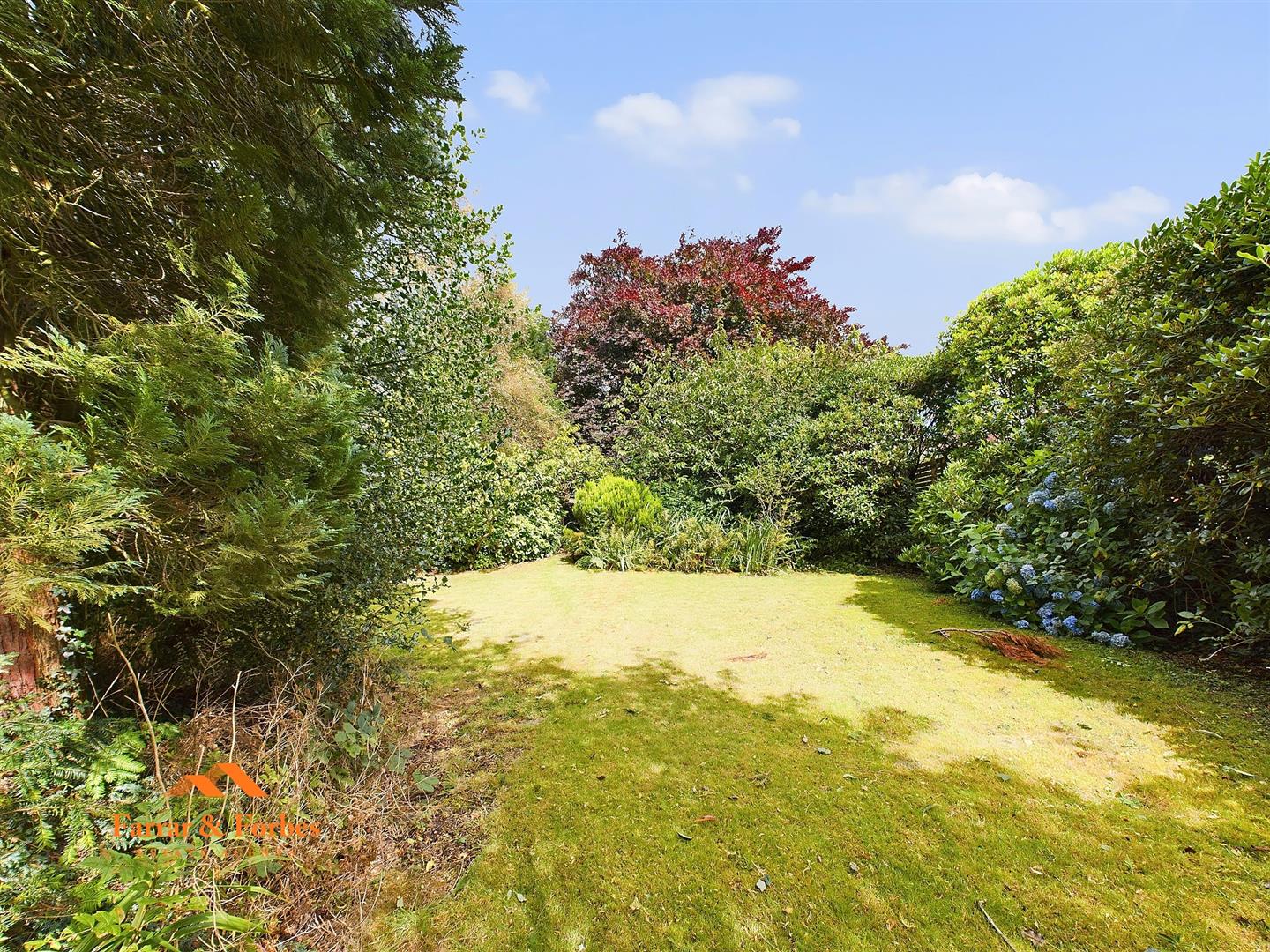 The real jewel of this property is the extraordinary garden, which extends all the way down to the park. It features raised stoned flower beds, a patio area shaded by blooming trees, and multiple lawned areas perfect for children and grandchildren to play. Additionally, a portion of the garden, around 10 to 20 feet, remains untended, offering incredible potential for further development or landscaping.