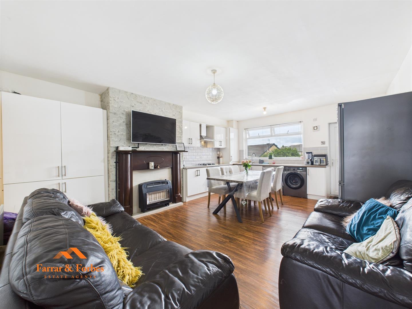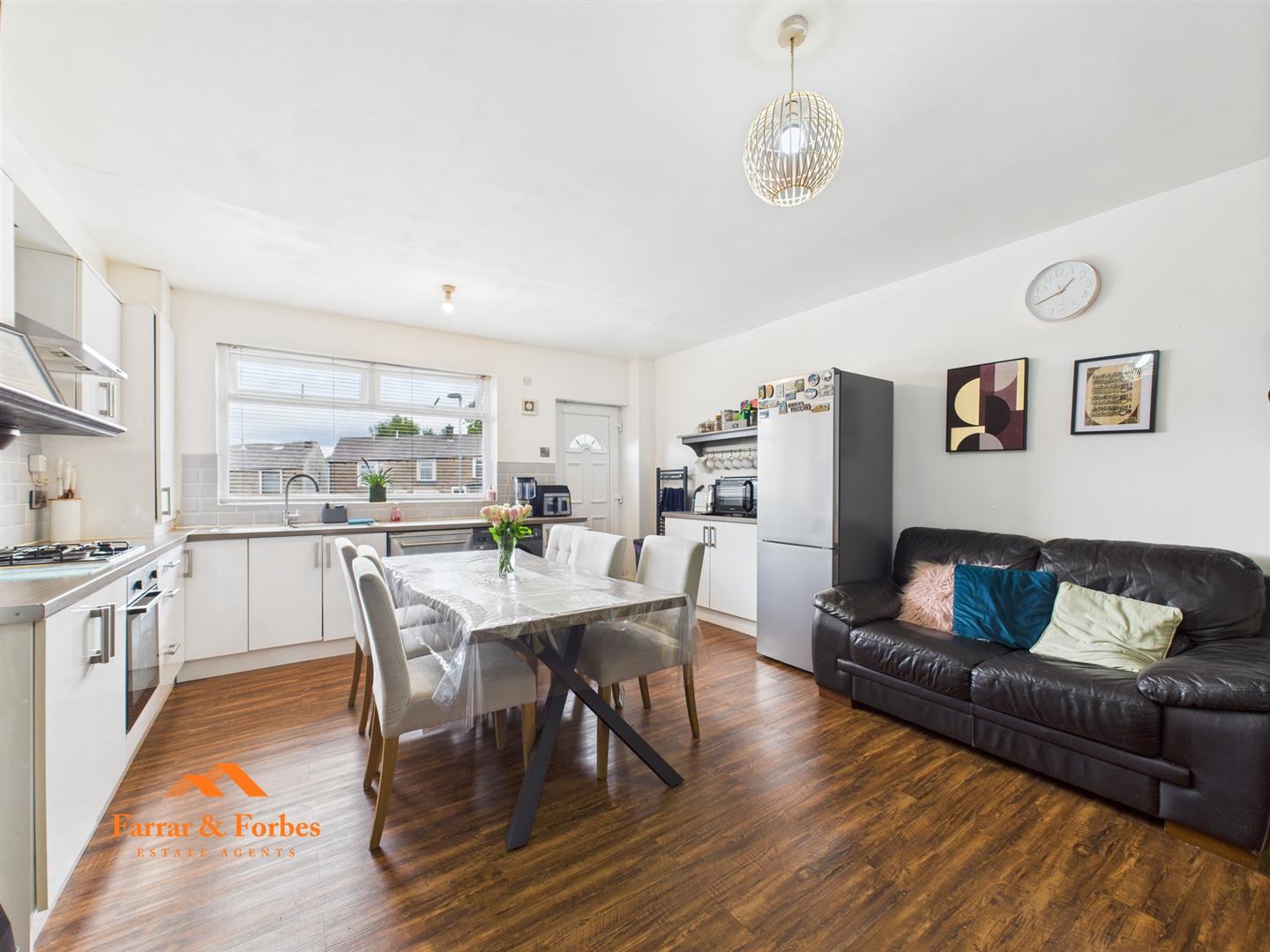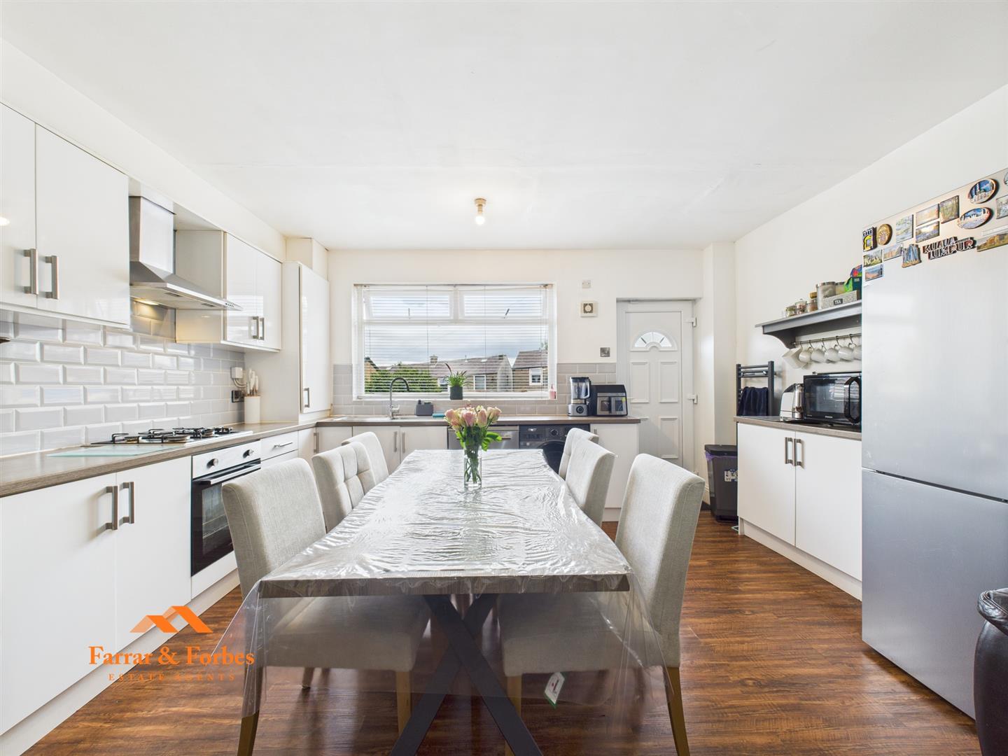 As you step into the welcoming hallway, you’re greeted by a cosy front lounge featuring a gas fire — the perfect focal point for relaxing evenings. To the rear of the property is a spacious, extended kitchen/diner. The kitchen is arranged in an L-shape and fitted with matching wall, base, and drawer units, complemented by contrasting work surfaces. It includes a gas hob, electric oven, and extractor hood. There’s ample space for a dining table and a sitting area, ideal for entertaining family and friends.