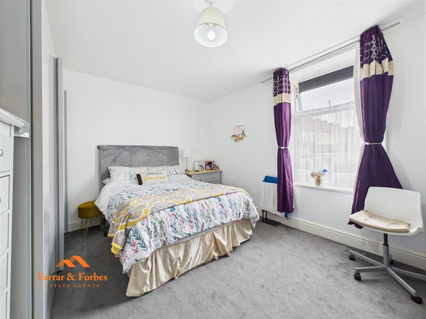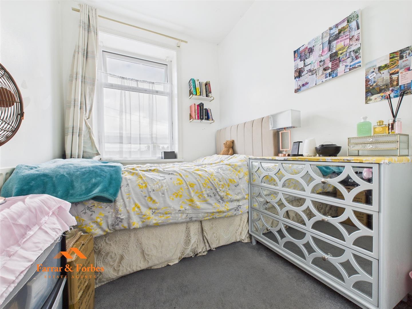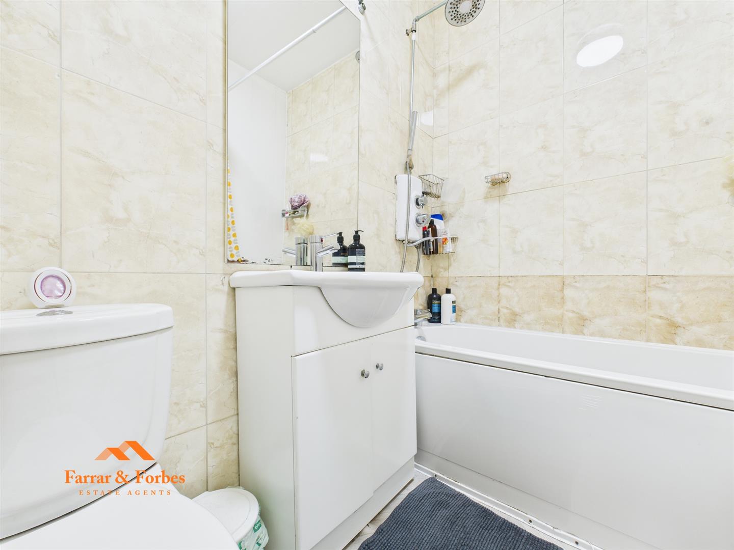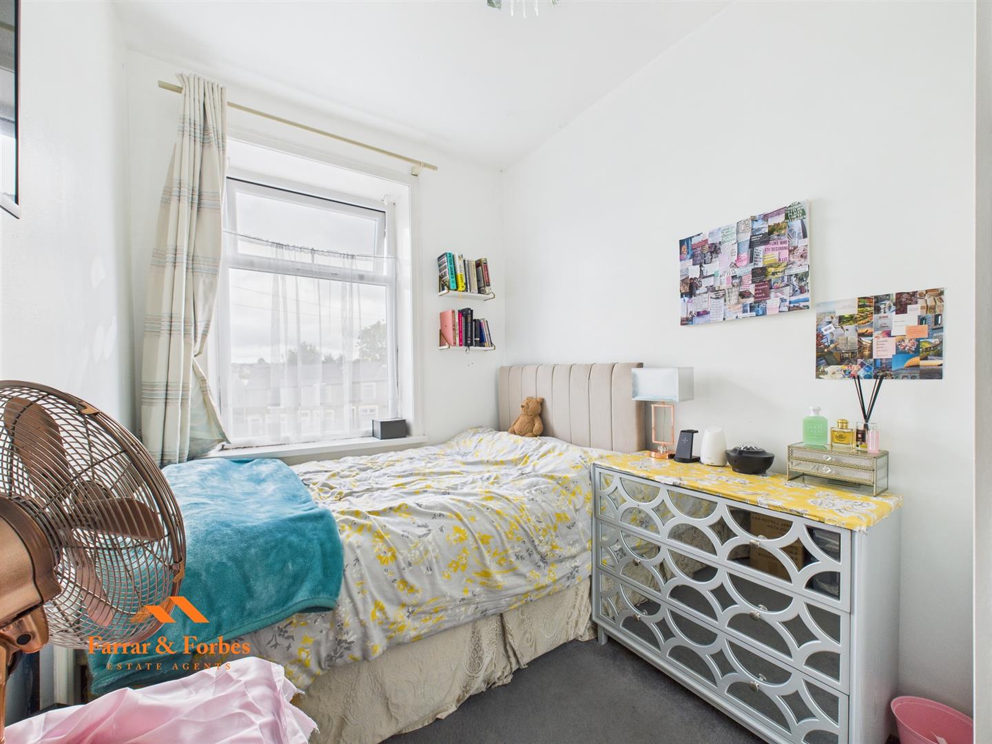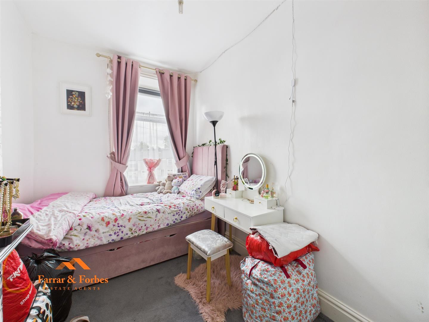 Upstairs, the first floor offers two well-proportioned single bedrooms and a generous double bedroom at the front. The centrally located family bathroom includes a low-level WC, pedestal wash basin, and a panelled bath with an electric shower.