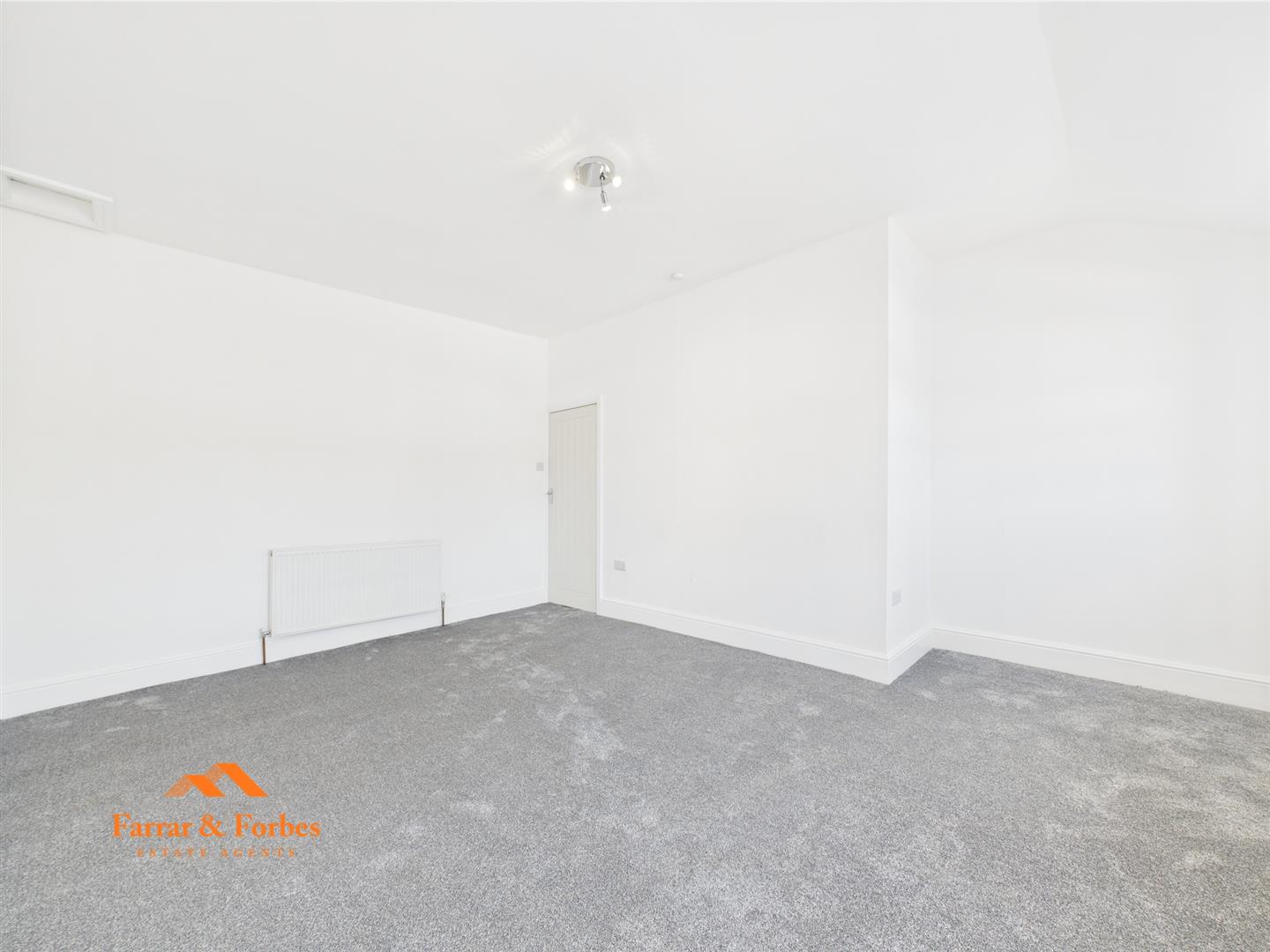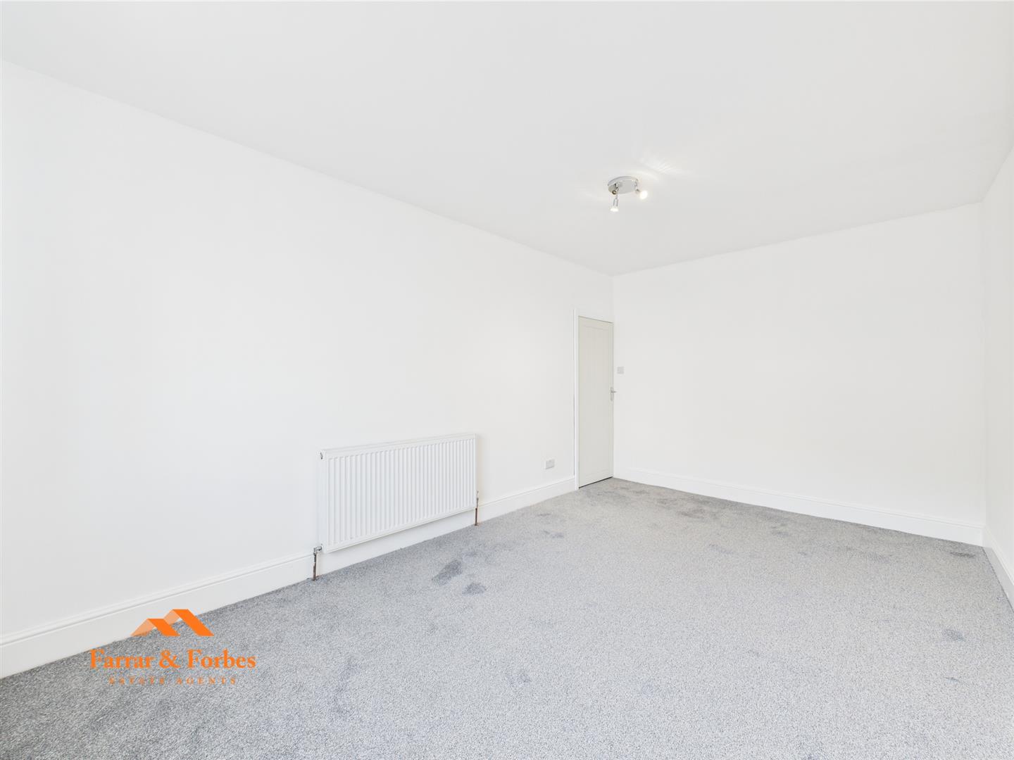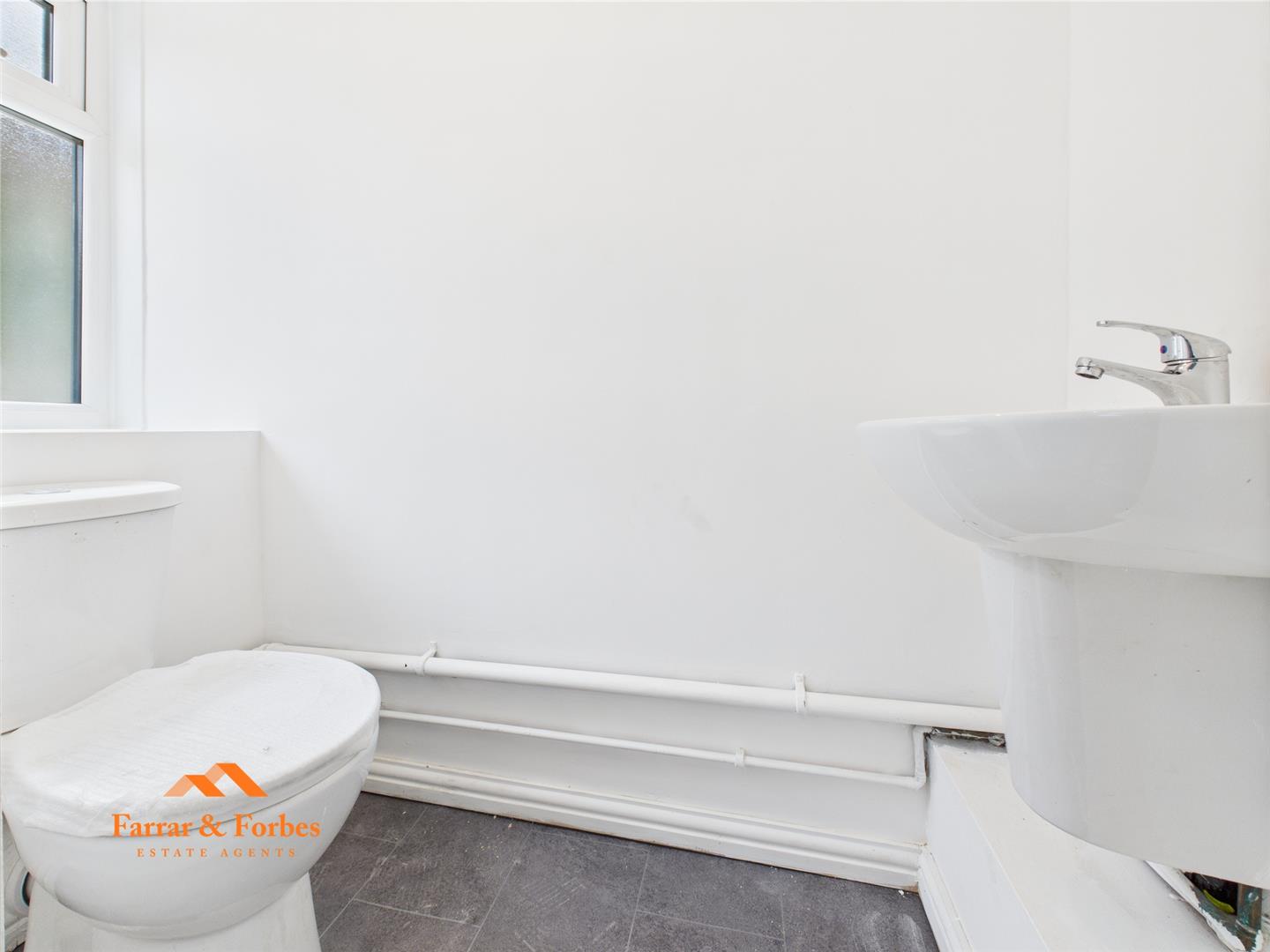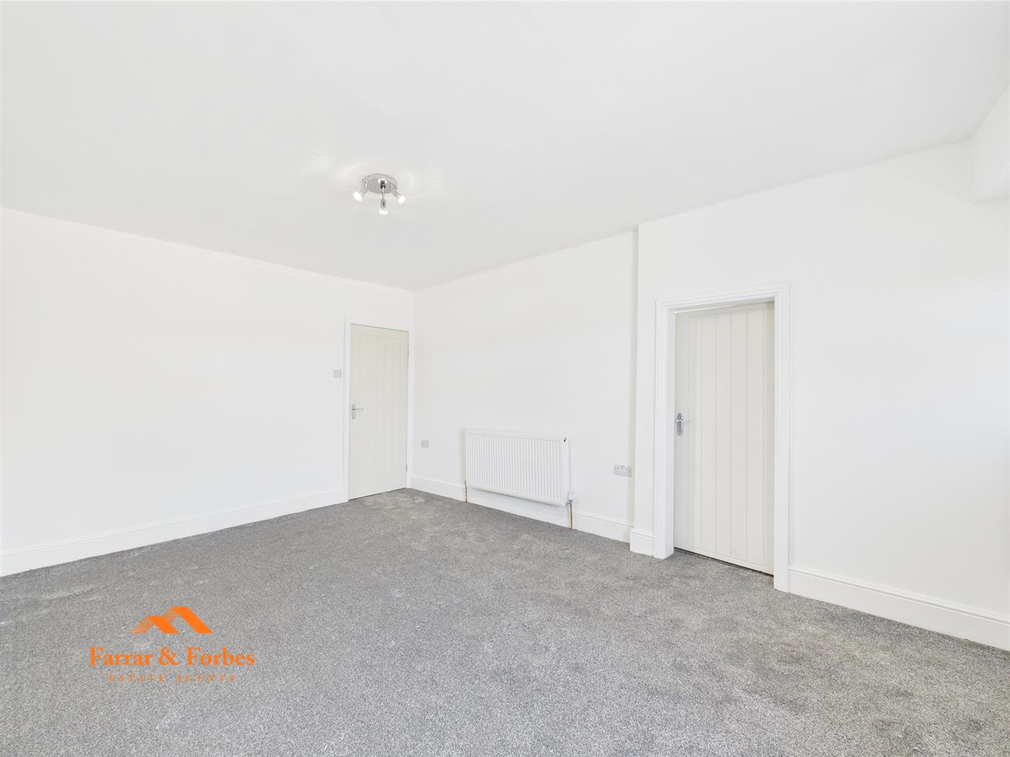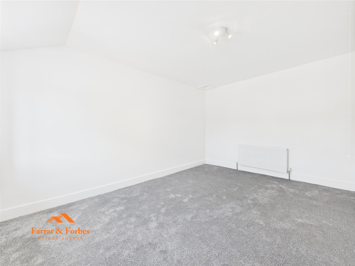 Upstairs, you’ll find two generously sized double bedrooms, freshly decorated in neutral tones, ready for your personal touch. The newly fitted bathroom is a true highlight, fully tiled from floor to ceiling with elegant panels and ceiling spotlights. It features a low-level WC, pedestal sink, and a panelled bath with overhead shower and glass screen.