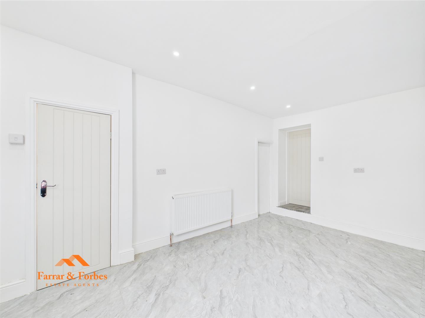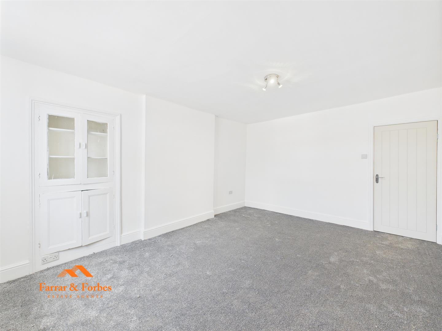 To the front of the house is a spacious lounge, filled with natural light thanks to a large window. Built-in alcove storage adds both practicality and charm, creating a stunning focal point.