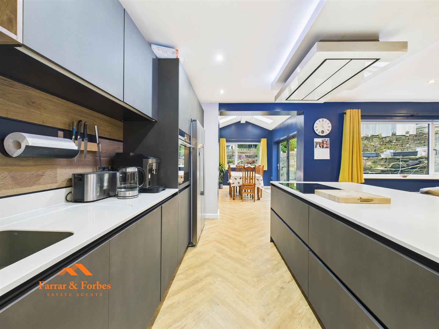 The property has been extensively improved and extended, with a high-quality extension completed in September 2022. This added a spacious dining room with bi-fold doors opening onto the patio, alongside a separate utility room. At the same time, all rear windows were replaced, enhancing natural light throughout. The living room is a grand size and fitted with s log-burner creating the perfect focal point.