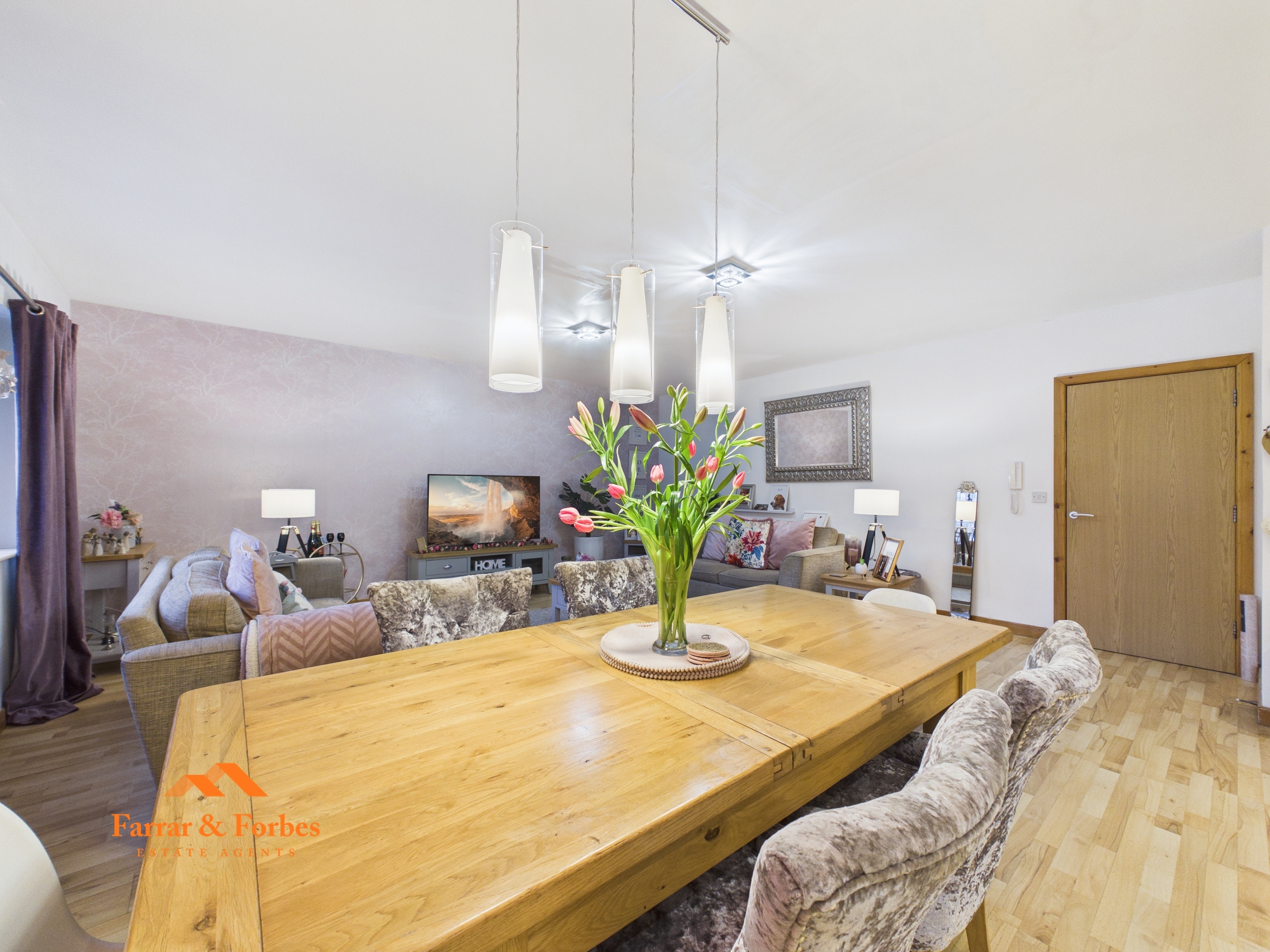 The property benefits from electric storage heaters and solar panels, enhancing energy efficiency. Externally, residents can enjoy beautifully maintained communal gardens that truly come into bloom during the summer months, along with a strong sense of community and stunning surrounding views.