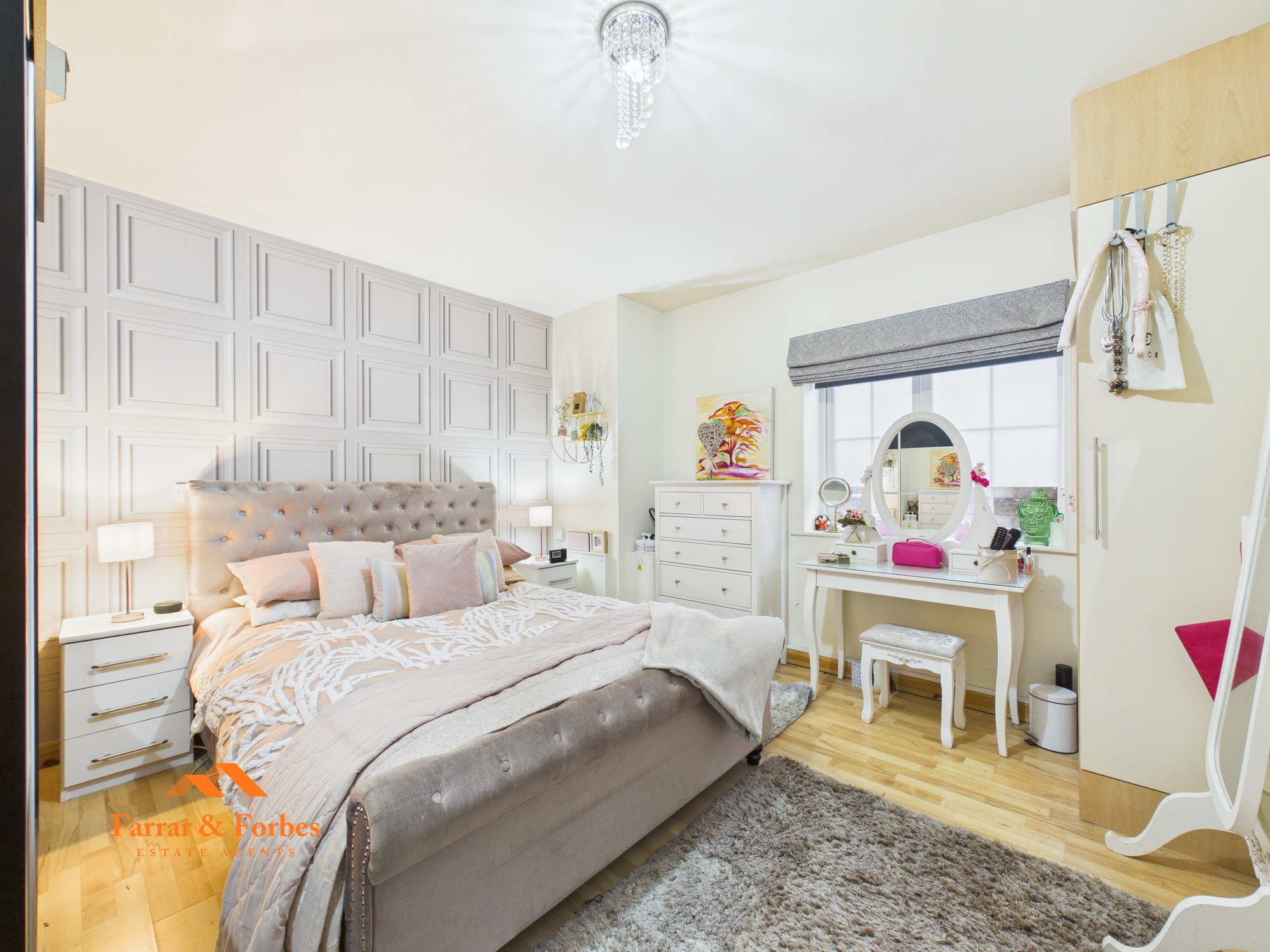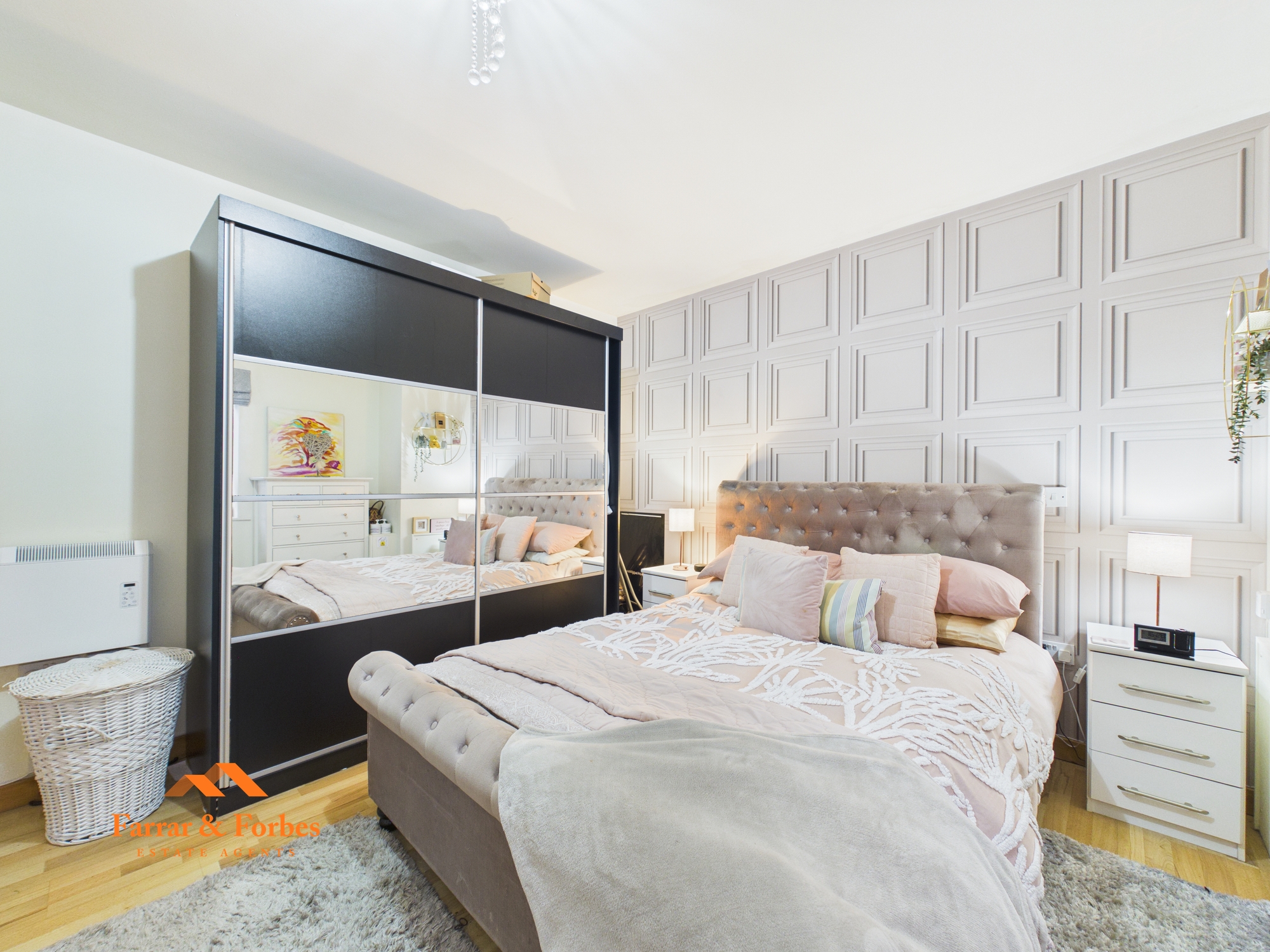 The apartment also includes a secure parking space with an electric up-and-over door, operated via key fob. The service charge is £100 PCM covers buildings insurance, structural elements, roof, grounds maintenance, and general upkeep of the complex.