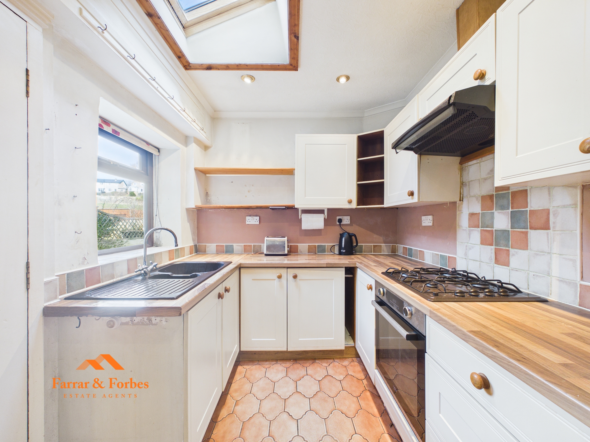 The property briefly comprises: an entrance vestibule leading into a hallway, a cosy lounge to the front with gas fire, and to the rear a spacious dining room featuring a gas fire and attractive fireplace surround. The kitchen extension is arranged in a practical U-shape with a range of matching wall and base units, contrasting work surfaces, and space for appliances.