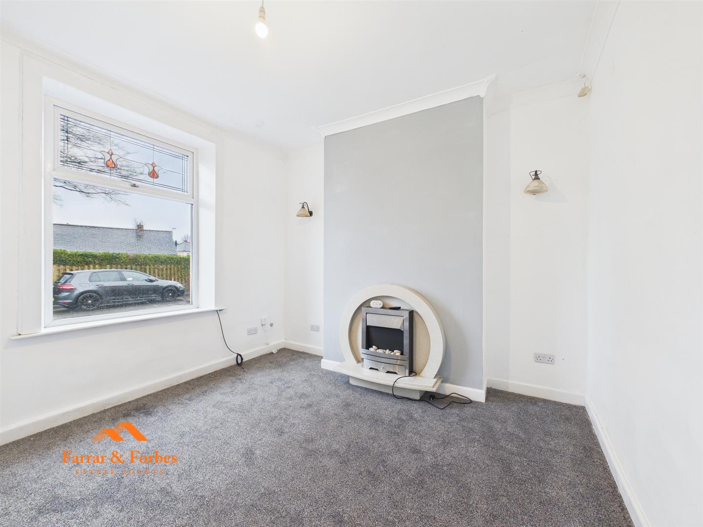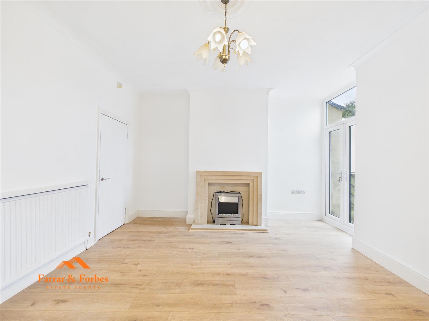 Upon entering, the hallway leads into a welcoming front lounge featuring an electric fire with an attractive surround. To the rear is a spacious dining room, also with an electric fire and surround, creating an ideal focal point. Patio doors open directly onto the rear yard, allowing for plenty of natural light.