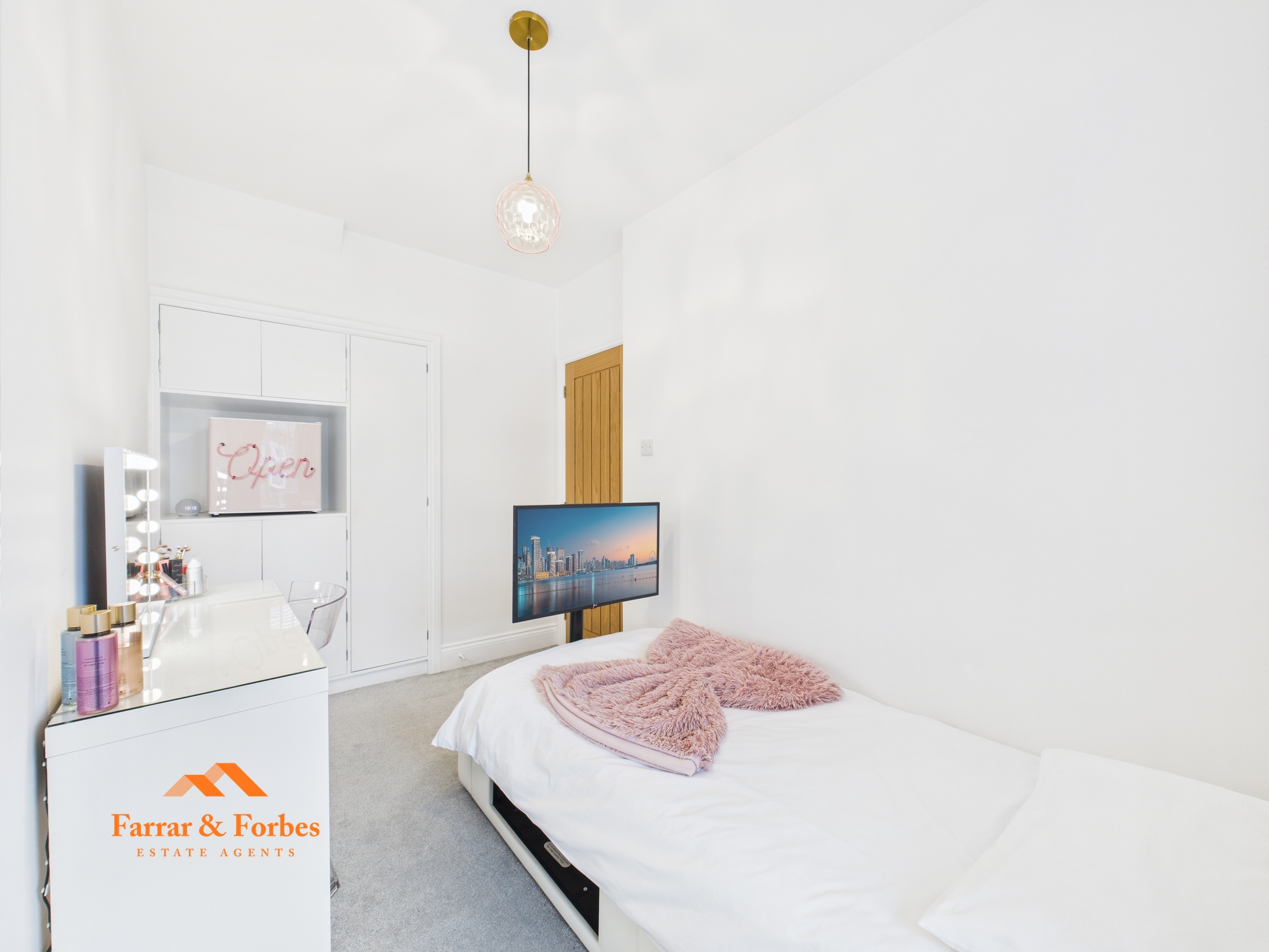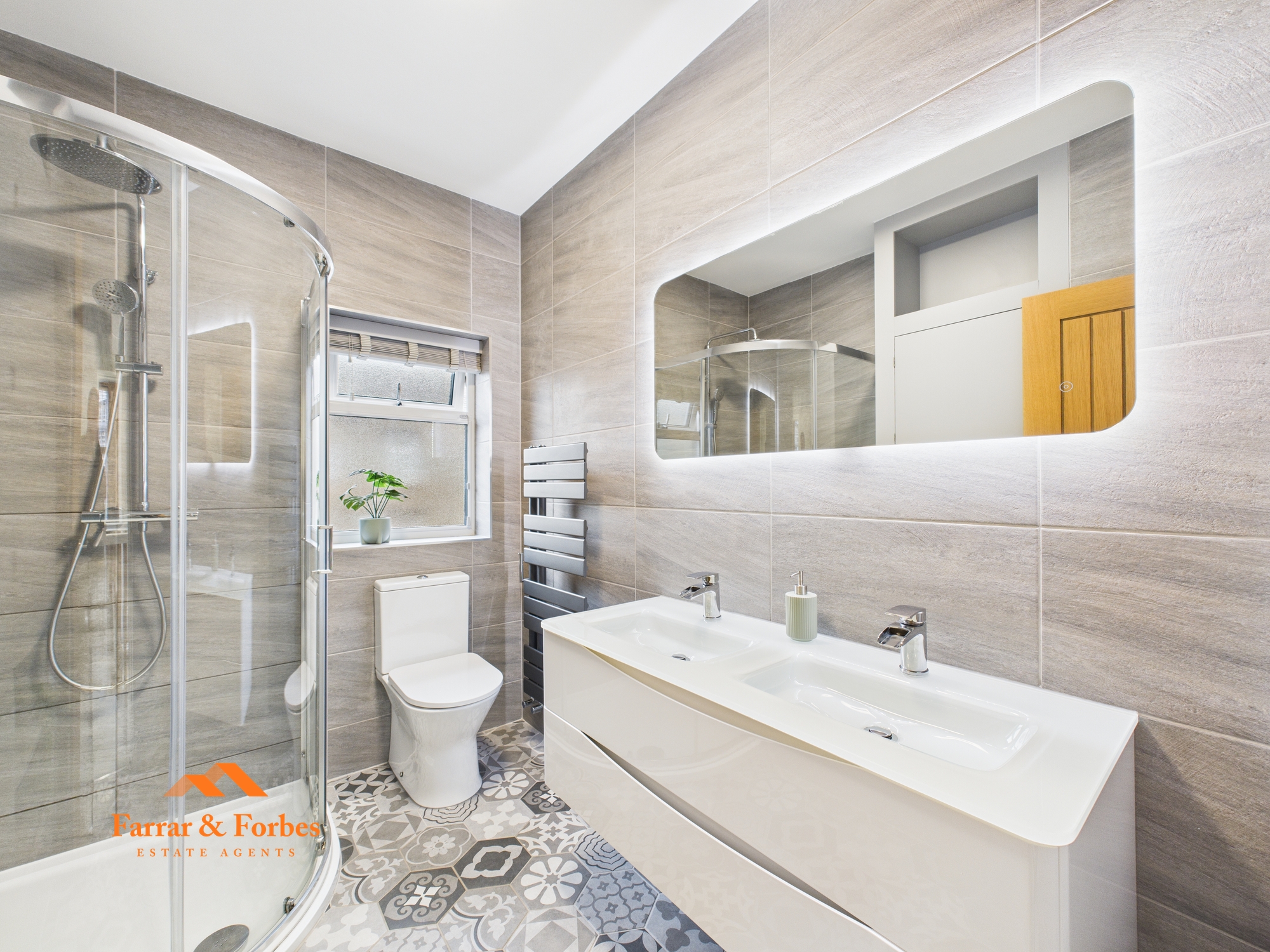 The first floor offers two well-proportioned bedrooms, with the rear bedroom benefiting from sleek handleless built-in storage. The luxury bathroom is finished with hex-style tiling and comprises a floating his-and-hers wash basin, low-level WC, and a quadrant shower with both rainfall and handheld options.