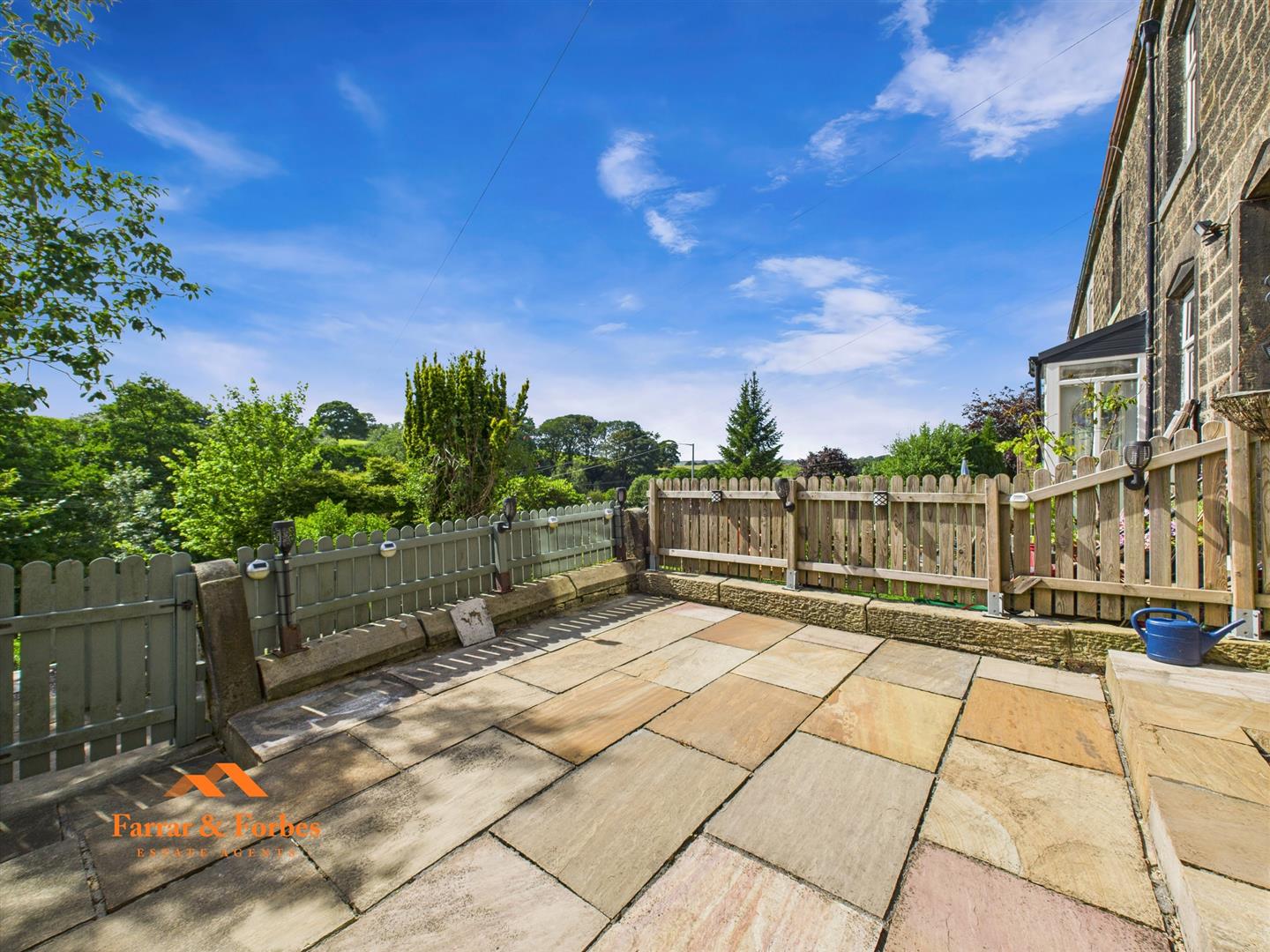 Outside, the front garden is a true sanctuary with a stone-flagged patio, pretty fencing and gate, leading to a tiered garden filled with flowerbeds, stone steps, pebbled seating areas perfect for summer BBQs, and a greenhouse with an additional spacious sitting area at the bottom—an idyllic retreat with stunning views.