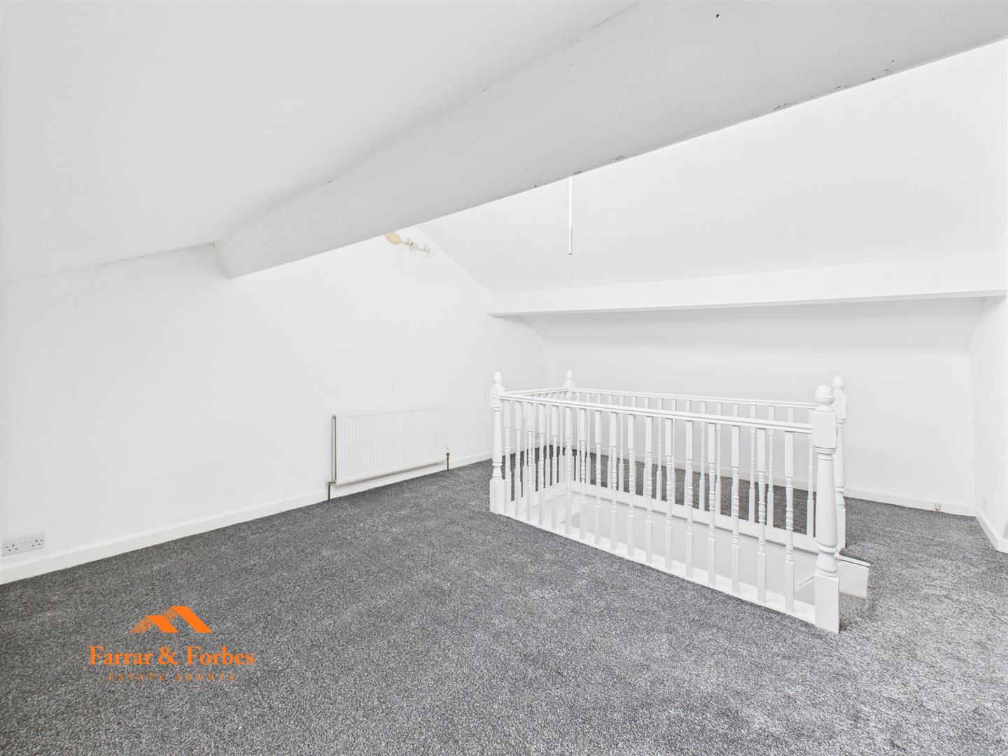 Upstairs are two generous double bedrooms, with the front room enjoying far-reaching views of the countryside. The newly renovated bathroom includes a low-level WC, pedestal wash basin, and a panelled bath with a glass screen and modern grey tile splashback. The original loft has been converted into a versatile room, ideal as a guest bedroom, home office, or hobby space, and features a Velux window for natural light.