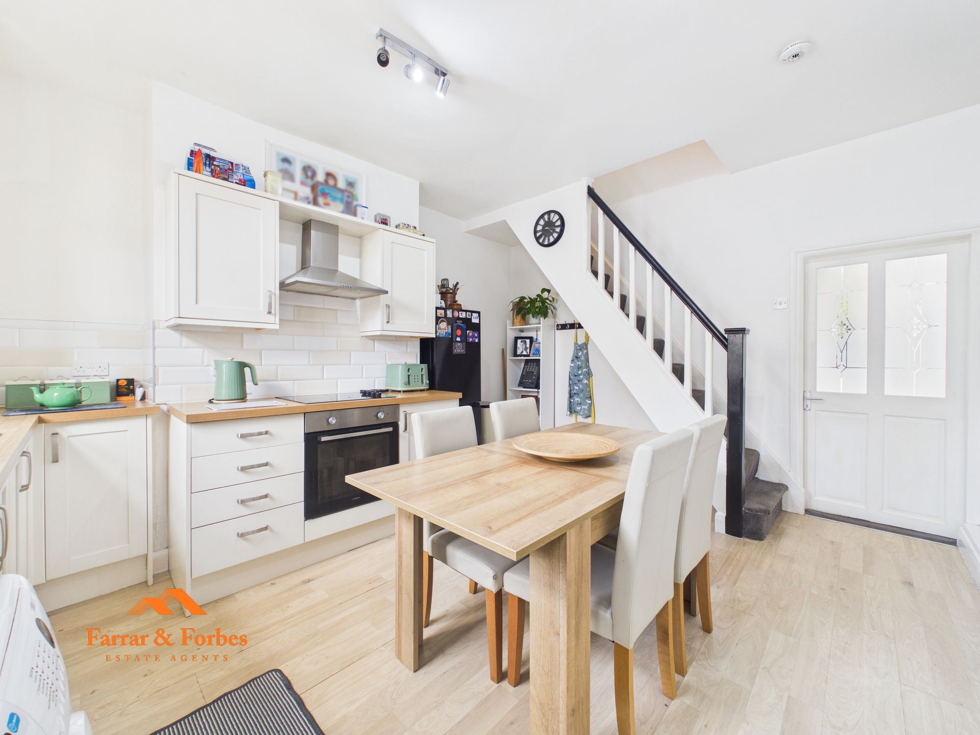 Upon entering, you are welcomed into a spacious lounge featuring a bay window, along with an electric fire and surround. To the rear, the kitchen diner is fitted with matching wall, base, and drawer units arranged in an L-shape, complete with an electric oven and hob. The space comfortably accommodates a dining table and offers flexibility for additional features such as a movable island.