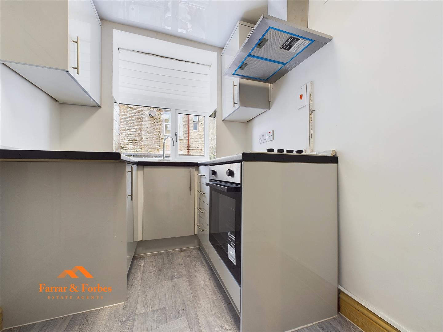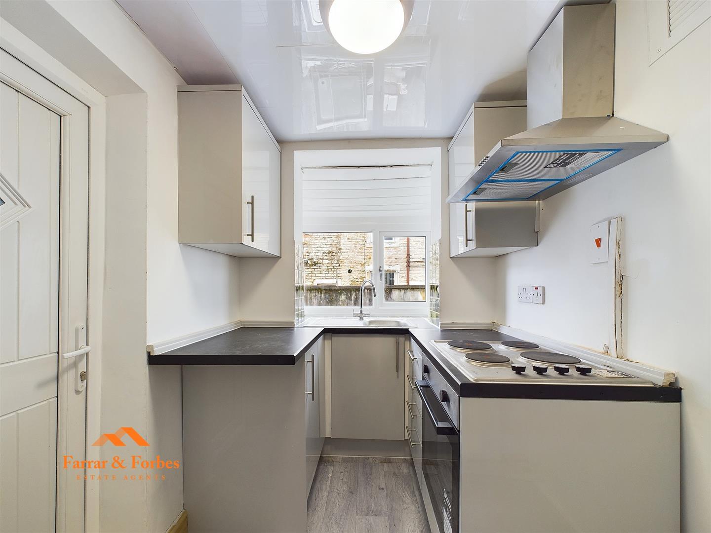 To the rear, the extended kitchen features matching wall, base, and drawer units, complete with an electric oven, providing a practical and functional space for everyday cooking.