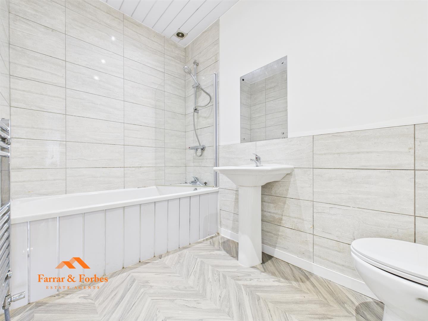 The property also features a well-appointed bathroom comprising low-level WC, pedestal hand wash basin and a panelled bath with an overhead shower. Outside, you will find an enclosed rear yard, complete with outbuildings, providing additional storage or potential for a small workshop.