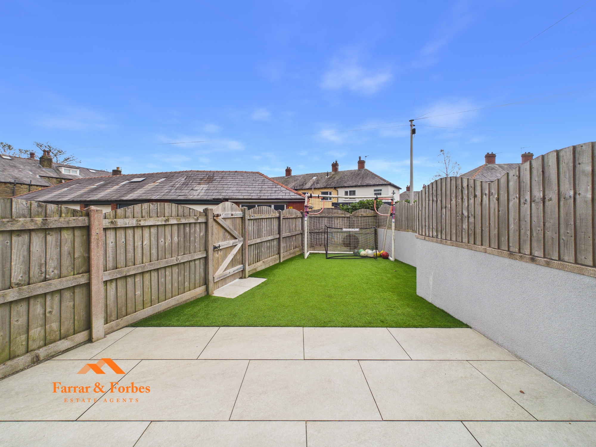 Externally, the property has a garden forecourt to the front. To the rear, there is a tiled and flagged garden with artificial turf, enclosed by fencing and offering side access to the property.