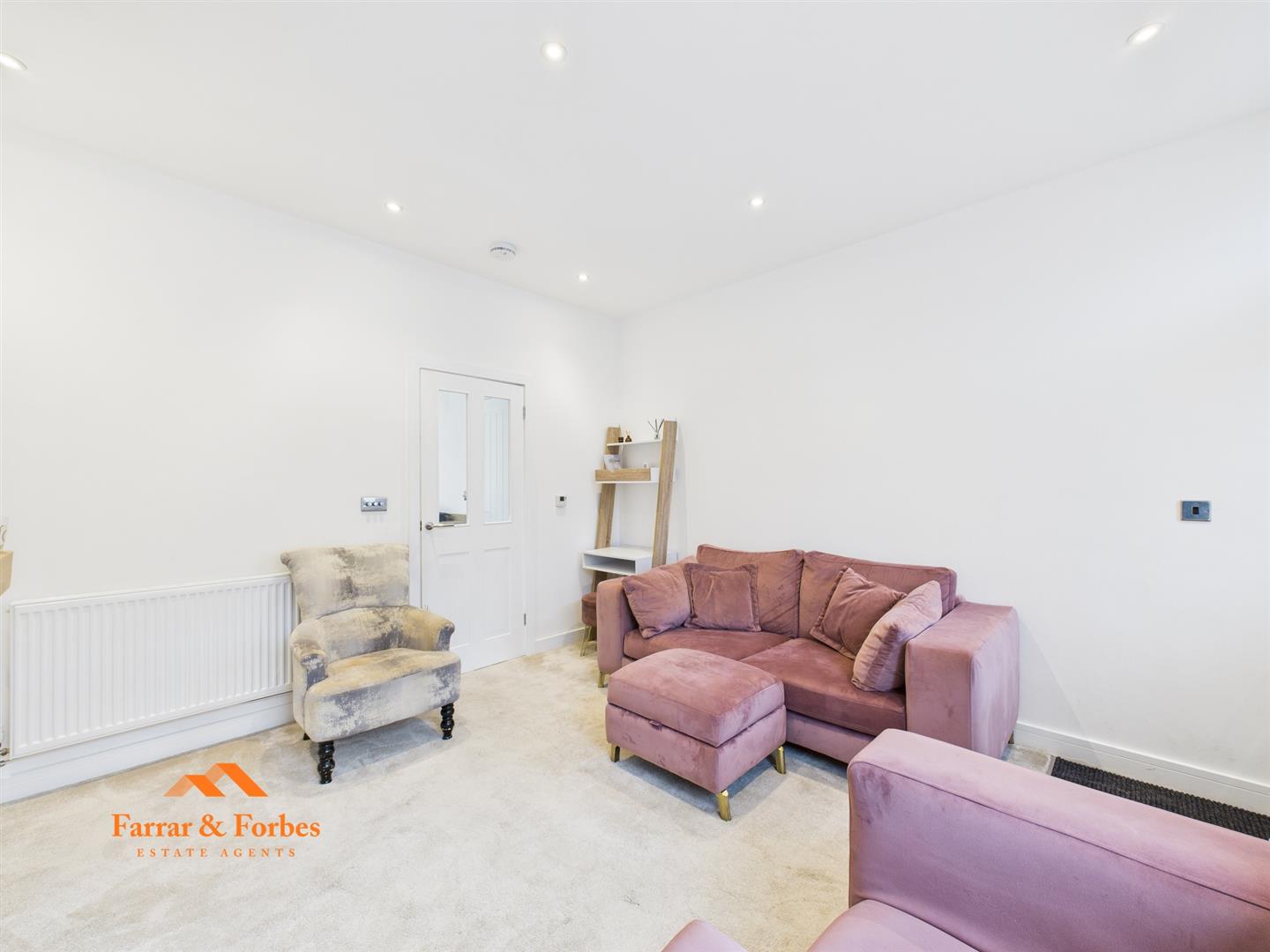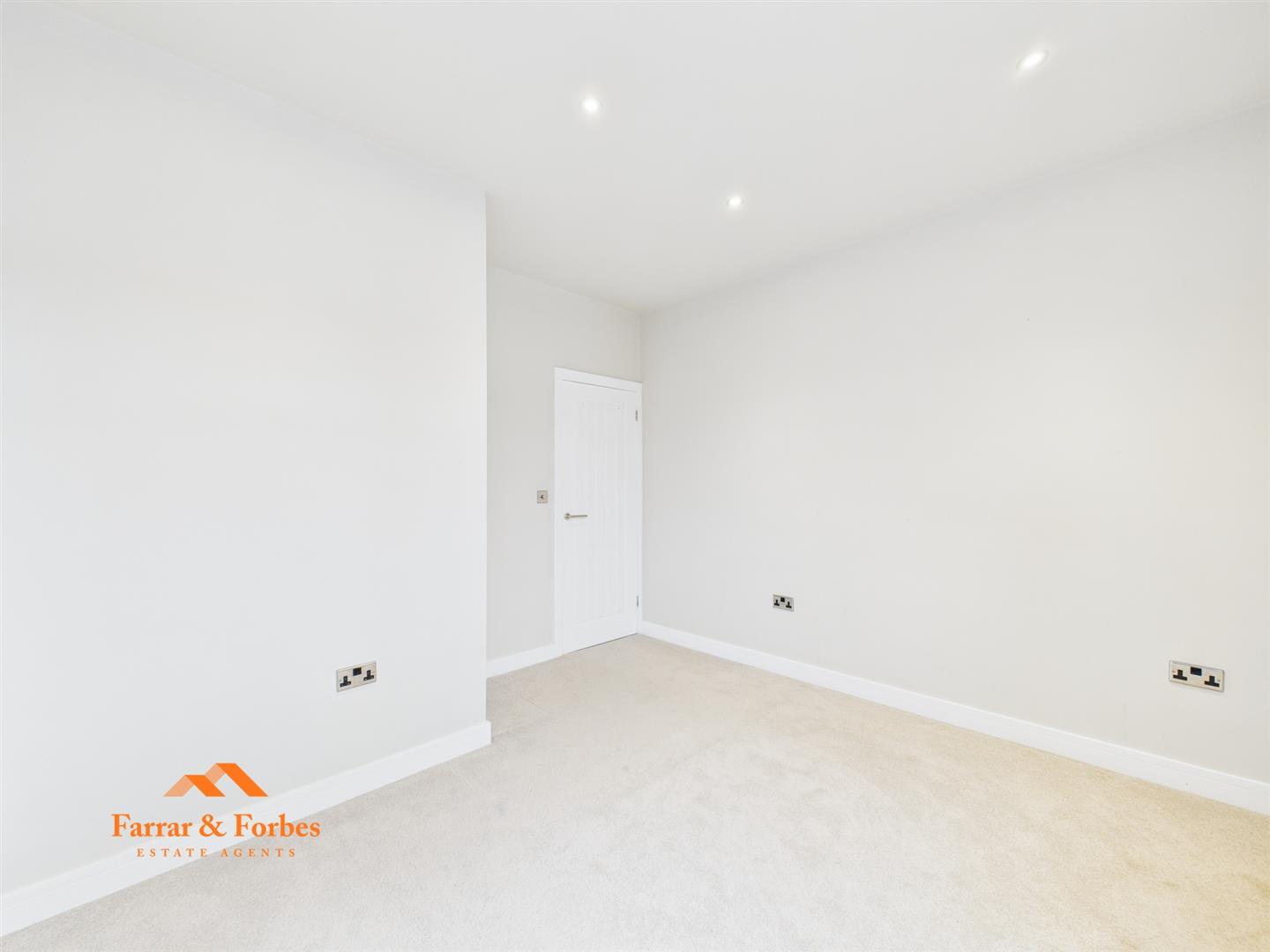 To the first floor, the property offers two generous bedrooms, both newly finished and neutrally decorated. The contemporary bathroom includes a walk-in shower, low-level WC, and a floating ceramic hand wash basin with an oak shelf, complementing the overall modern design.