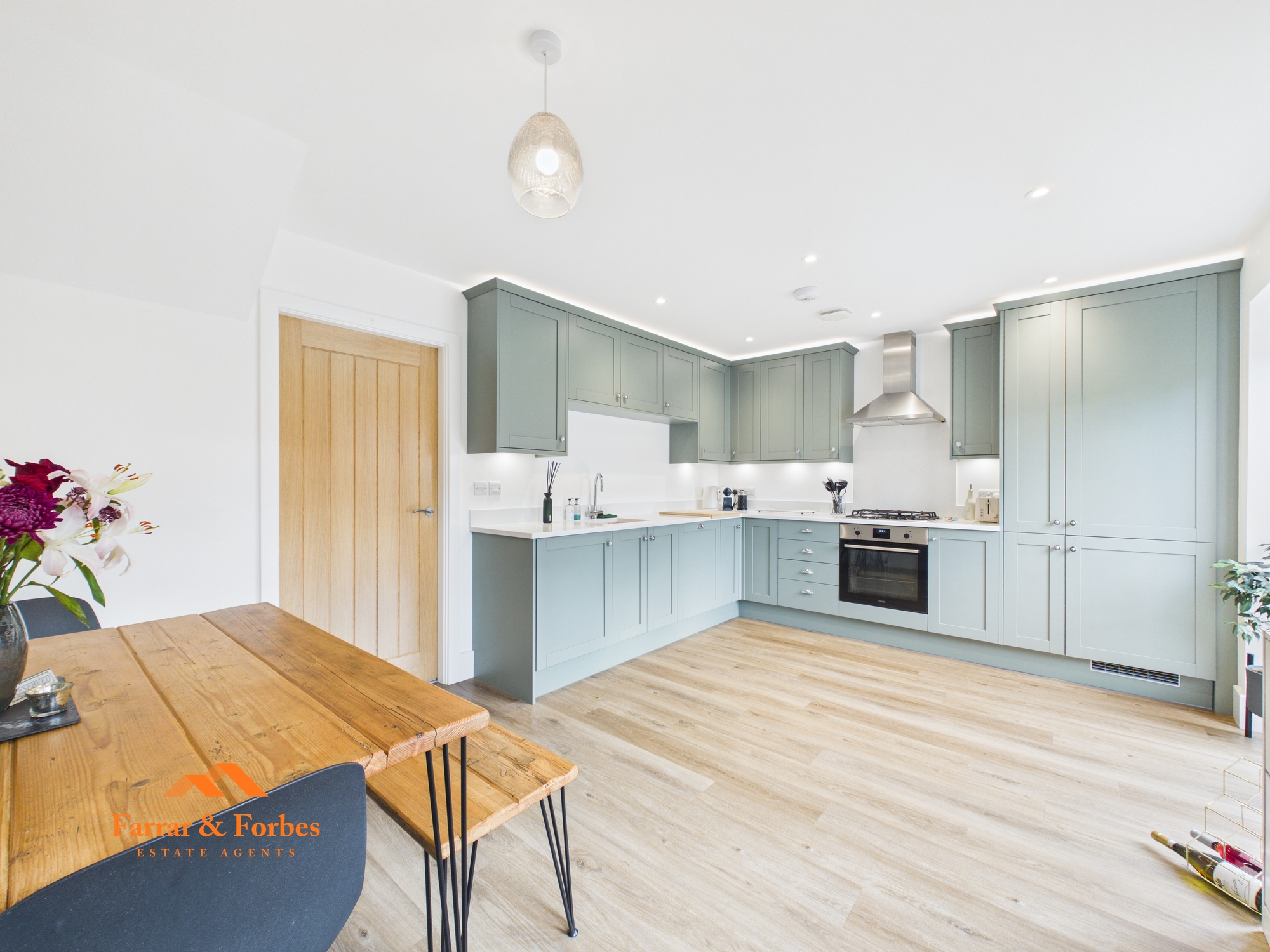 Approached via stone flagging to the front, the home enjoys an elevated setting that enhances its outlook and kerb appeal. The welcoming entrance hall leads to a convenient downstairs WC with hand wash basin. The lounge is generously proportioned, providing an excellent space for relaxing and entertaining, while oak internal doors throughout add warmth and a premium finish.