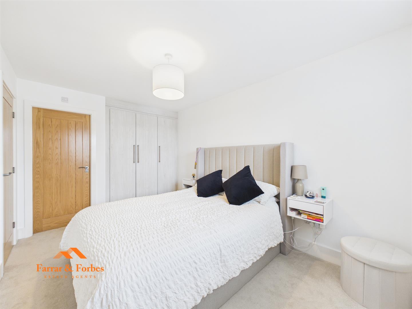 To the first floor, the property offers four bedrooms, including three doubles and a generously sized single. The main bedroom benefits from fitted wardrobes and a modern three-piece en-suite comprising a low-level WC, pedestal hand wash basin, and a walk-in shower with rainfall shower. The family bathroom is finished to a stylish standard and includes a low-level WC, pedestal hand wash basin, and a panelled bath with overhead shower and contemporary tiled splashback.