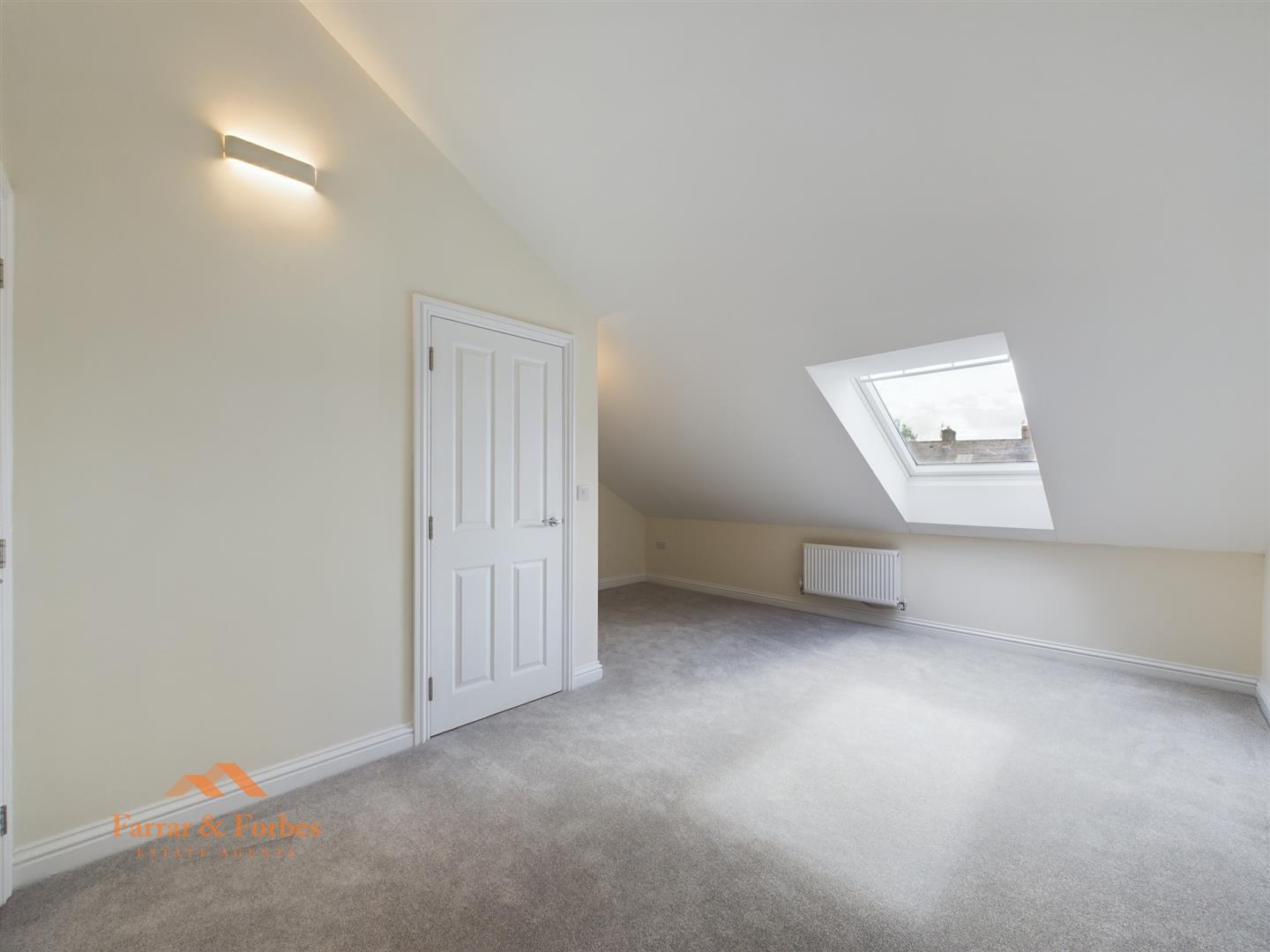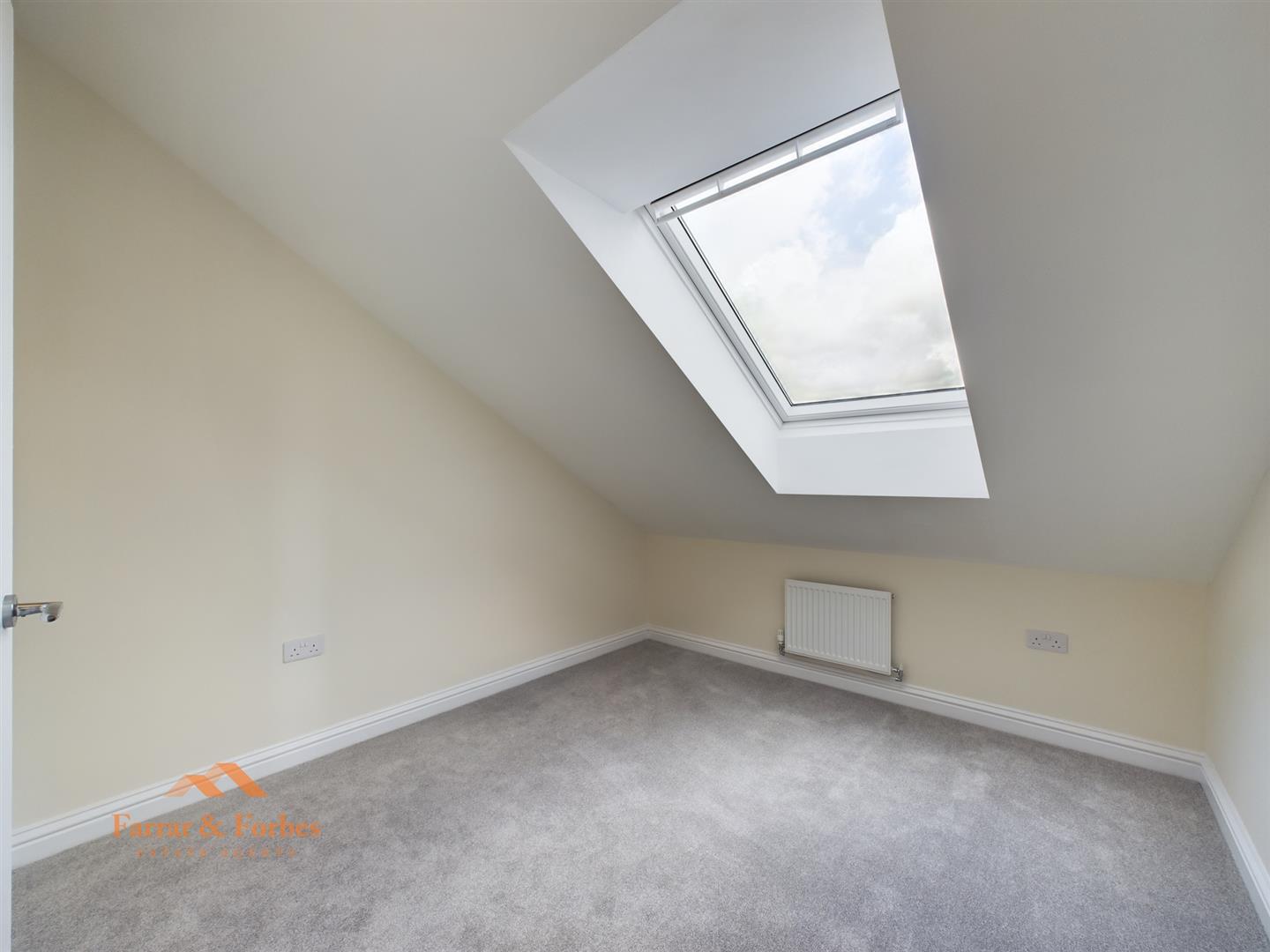 The second floor is dedicated to two more bedrooms, each with charming Velux windows. The main bedroom is thoughtfully arranged in an L-shape, offering a cozy corner perfect for a dressing table or reading nook. This bedroom enjoys the luxury of a Jack & Jill style bathroom, which is accessible both from the main bedroom and the landing.