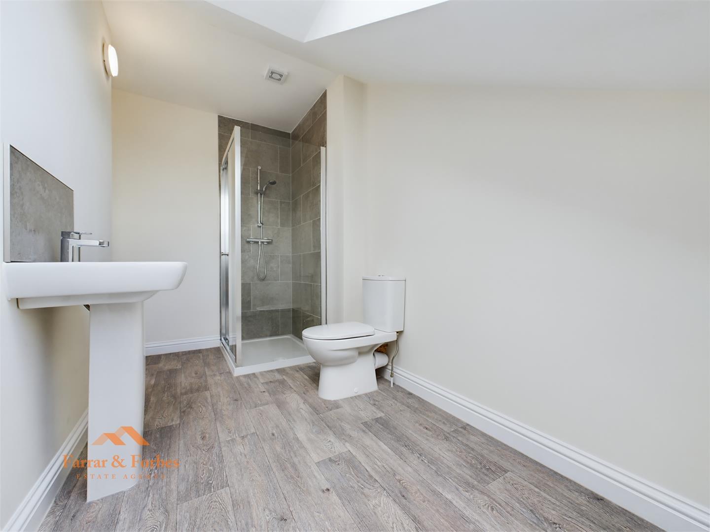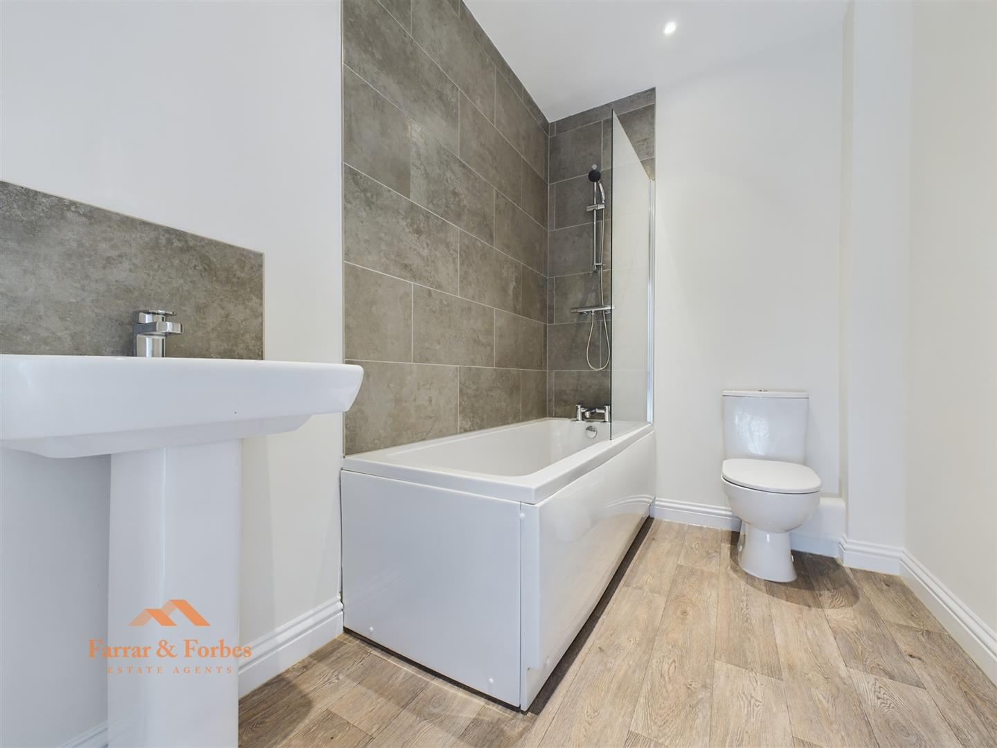 Ascending to the first floor, you will discover an L-shaped lounge with two large windows that flood the room with natural light, This floor also hosts a three-piece family bathroom in white, comprising a low-level WC, hand wash basin, and paneled bath with an overhead shower. Additionally, there are two bedrooms on this floor—a generously sized single and a double bedroom.