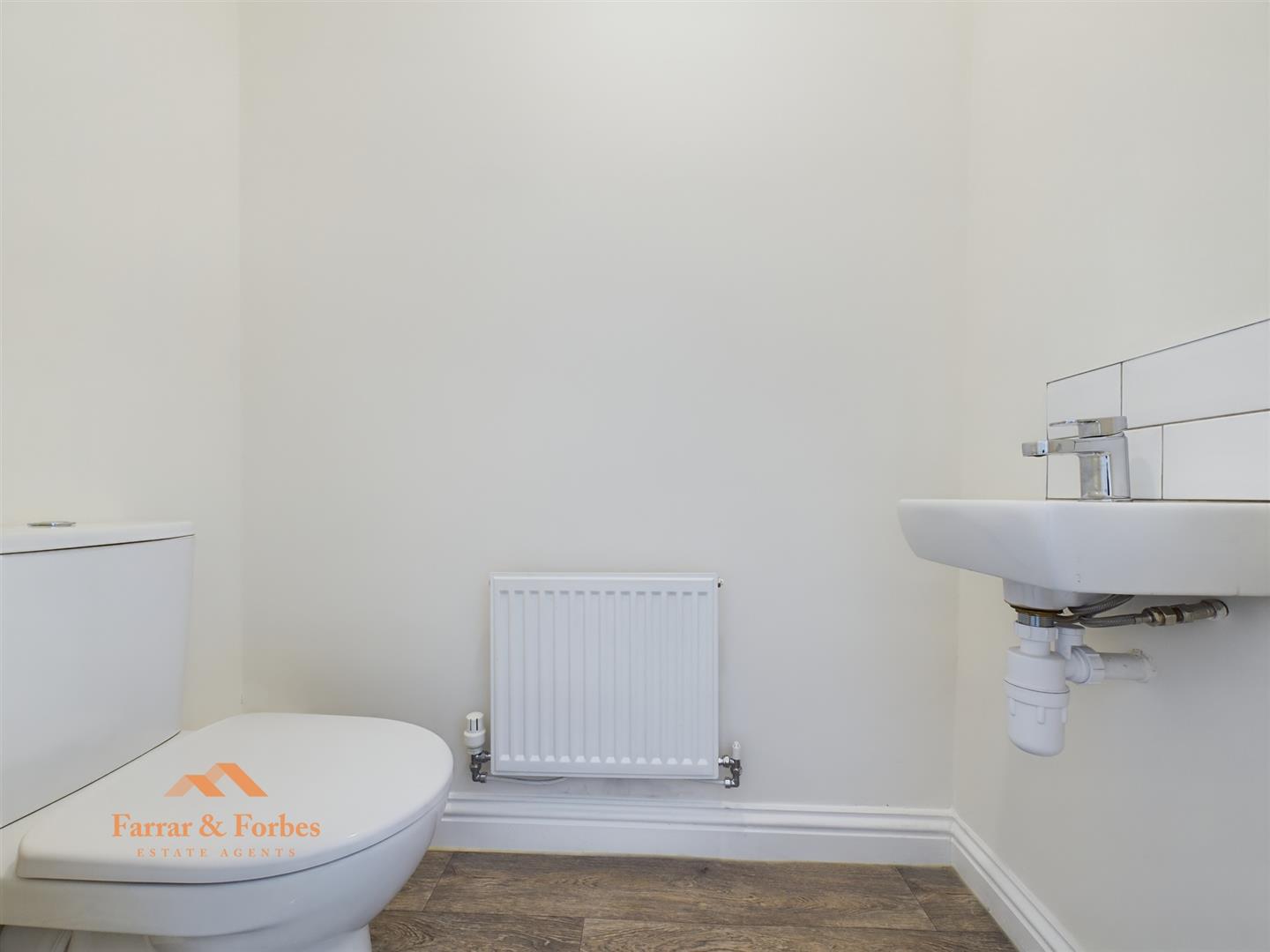 Upon entering the home, you are greeted by a welcoming hallway with a downstairs WC and hand-wash basin. The heart of the home lies at the rear, where you’ll find a beautifully appointed white gloss fitted kitchen. This L-shaped kitchen is complete with a stainless steel sink and drainer, extractor hood, electric hob, and oven. The practical under-stairs storage provides a perfect spot for tucking away the ironing board and vacuum.
