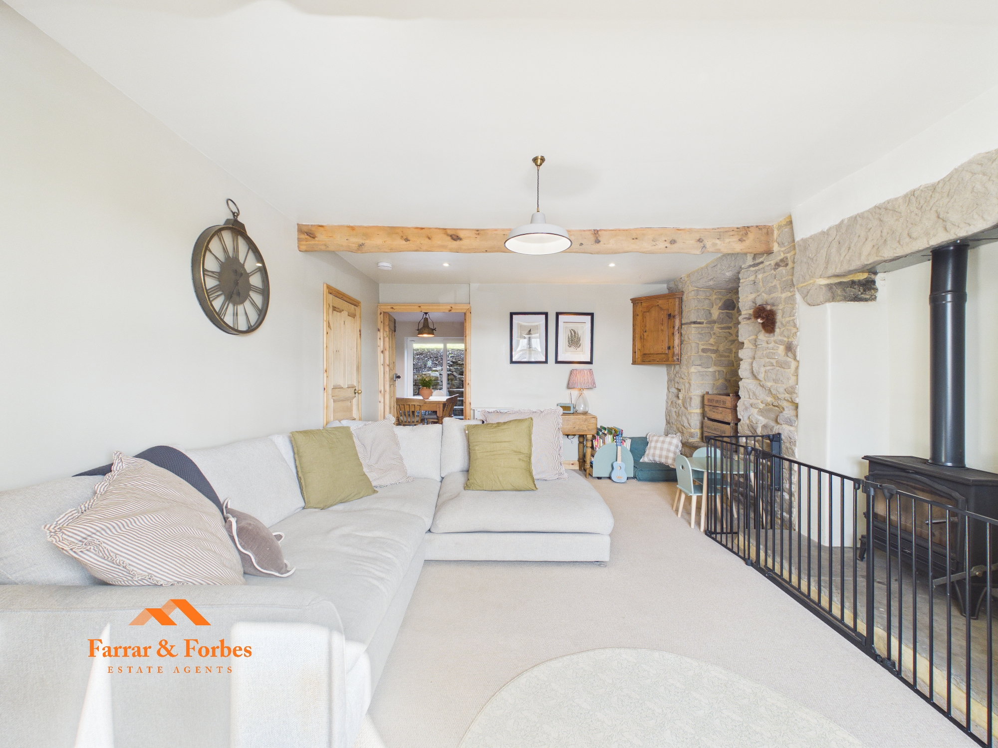 The approach to the home has been recently reflagged with traditional York stone, setting the tone for the quality found throughout. Internally, the current owners have undertaken a full renovation in 2021, thoughtfully restoring original features that give the home its unique character—from reclaimed doors with original ironmongery to exposed stonework and a recently sandblasted exterior.