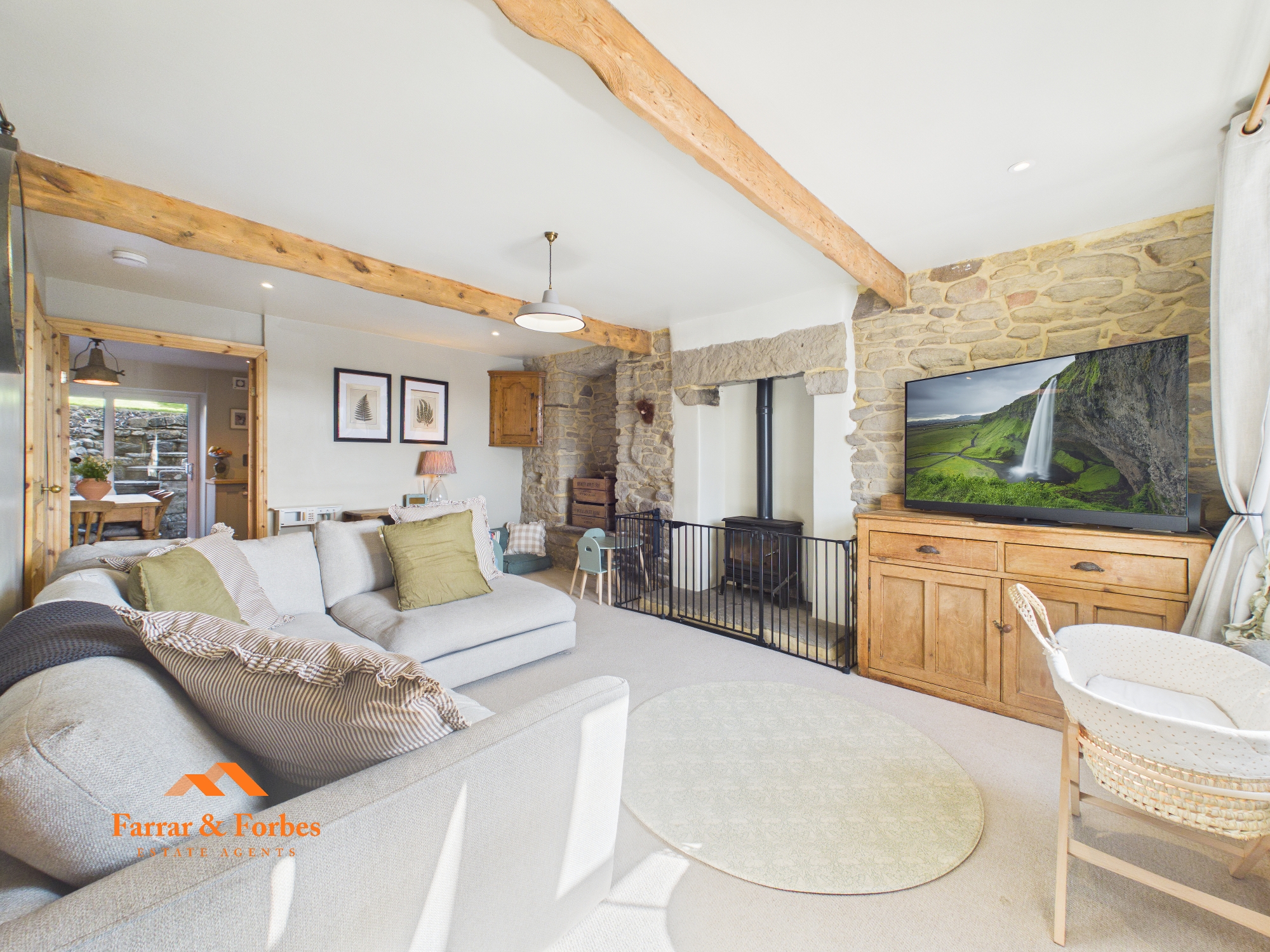 Approached via a quiet lane, the property benefits from generous off-road parking for four or more vehicles, along with a detached stone-built garage. This additional land offers exciting potential for further development, such as an annex or extension (subject to the necessary planning permissions).