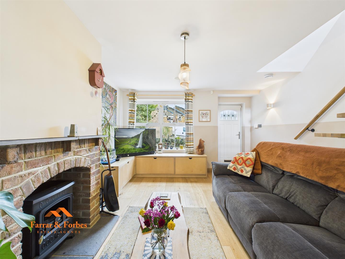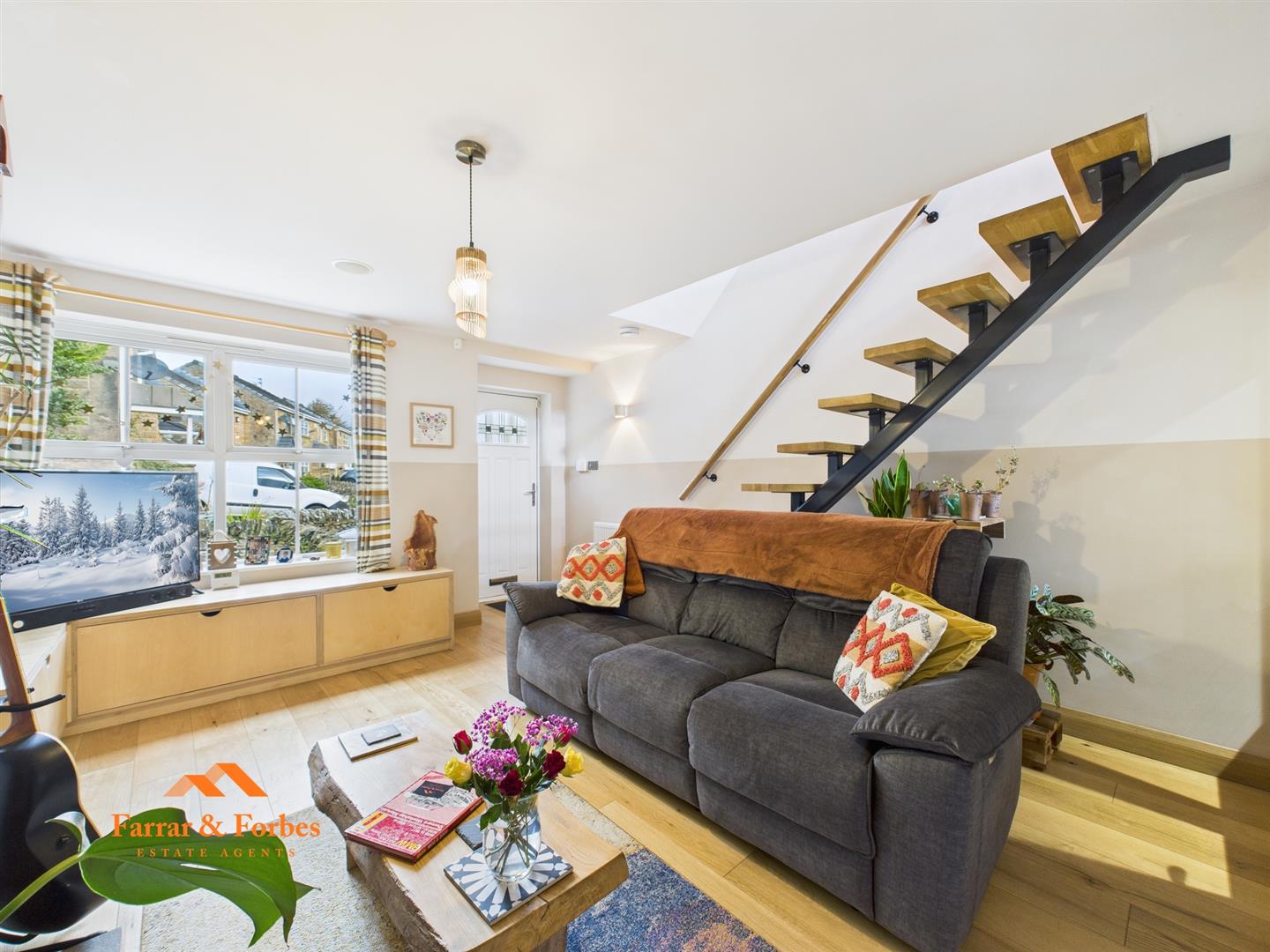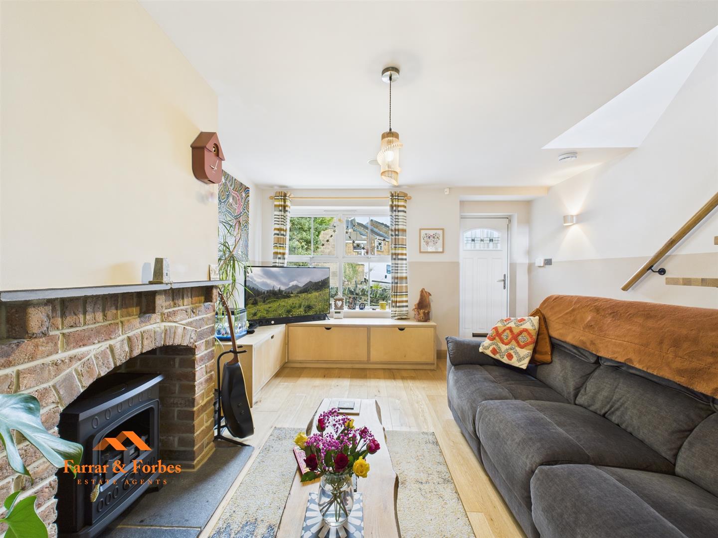 As you approach, the property impresses with a driveway providing parking for multiple vehicles and a single garage with a manual up-and-over door. Stepping inside, you’re welcomed into a bright, open-plan lounge featuring an eye-catching oak staircase, a stylish brick fireplace with electric fire.