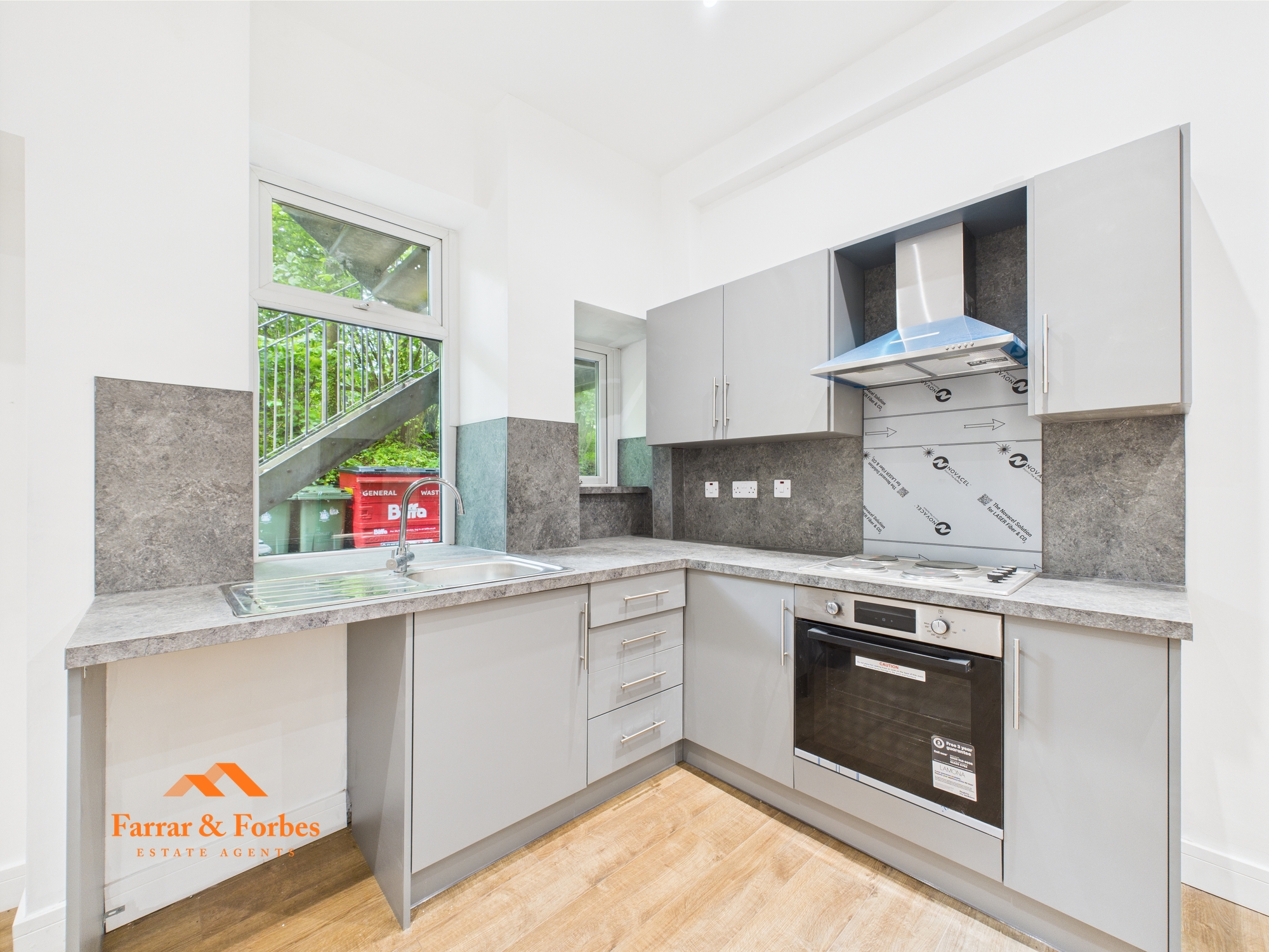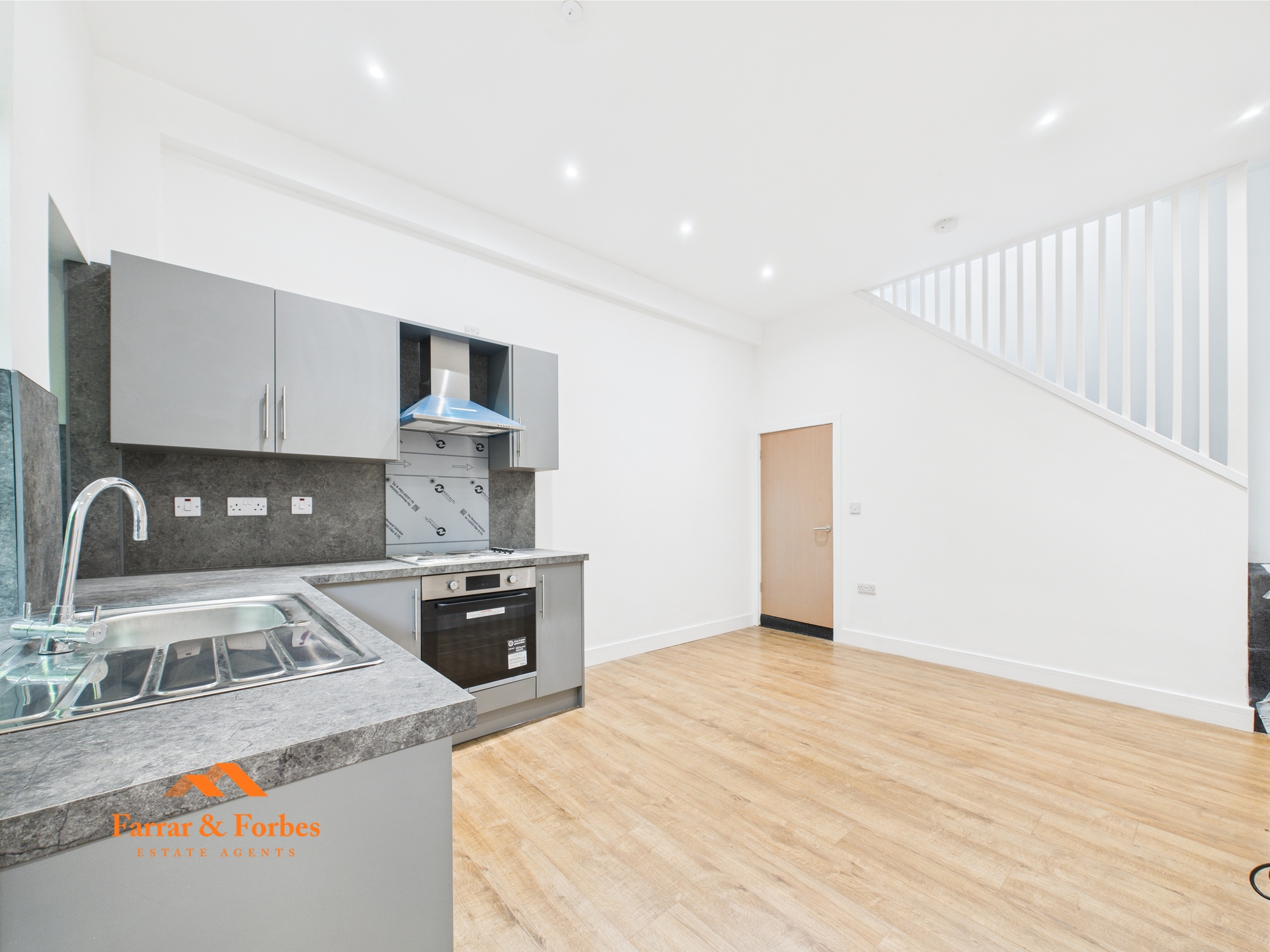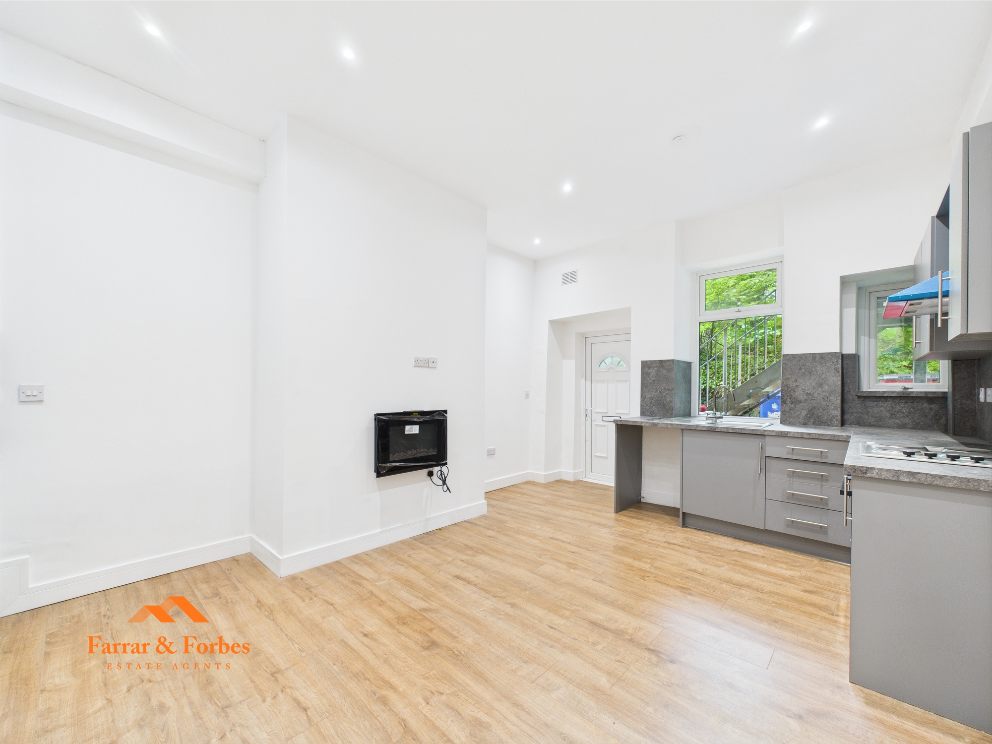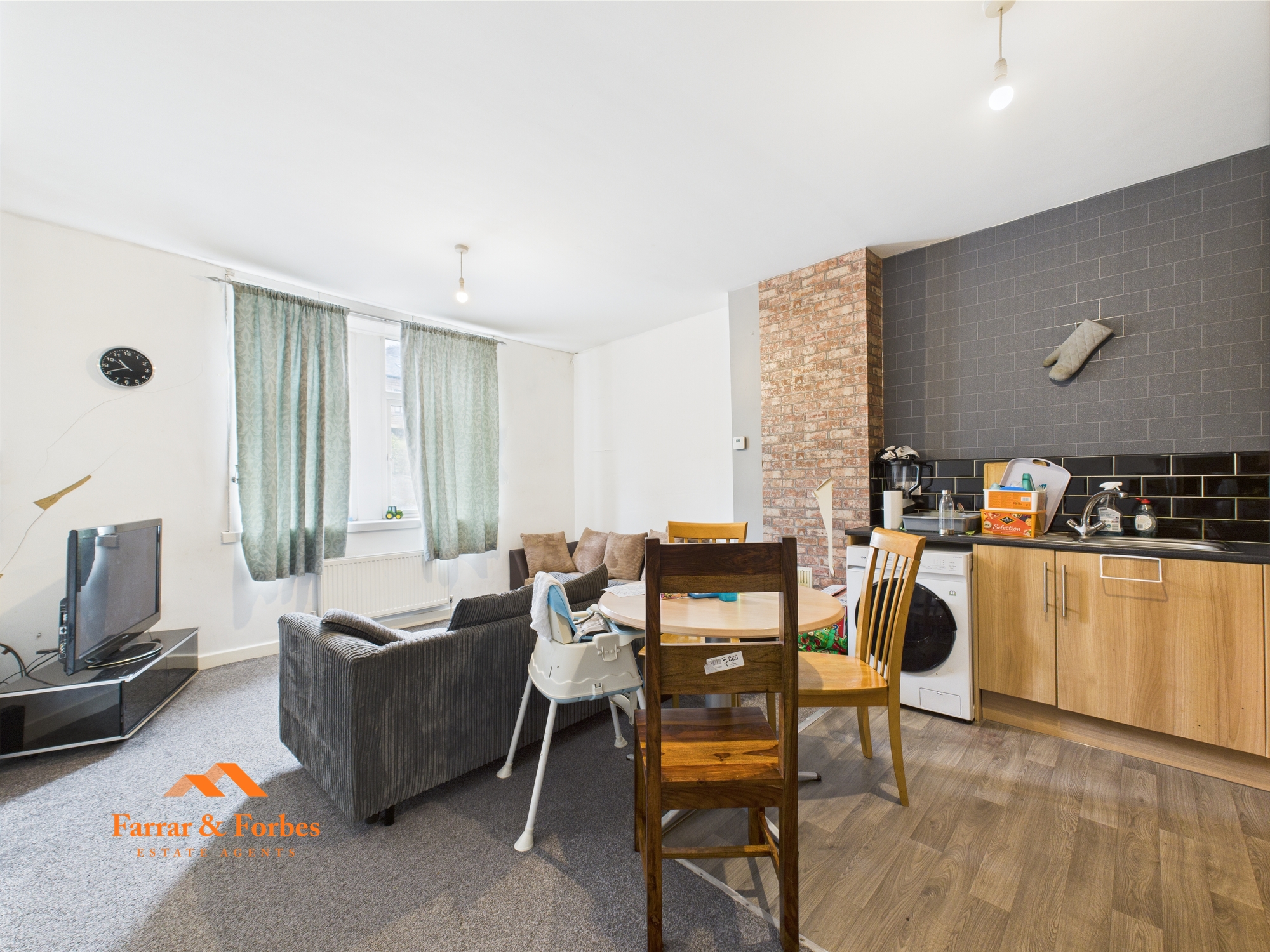 The business is not included in the sale, but the premises have been successfully operated for many years and include a WC and hand wash basin. Adjoining the commercial space is a well-presented one-bedroom apartment featuring a spacious double bedroom, a modern three-piece bathroom suite with a low-level WC, pedestal hand wash basin, and a quadrant shower with marble-effect wall panelling. The open-plan kitchen/living area boasts a newly fitted horseshoe-style kitchen with matching wall, base, and drawer units, contrasting work surfaces, and an integrated electric oven and hob. This apartment is currently vacant and advertised at £525 PCM.
