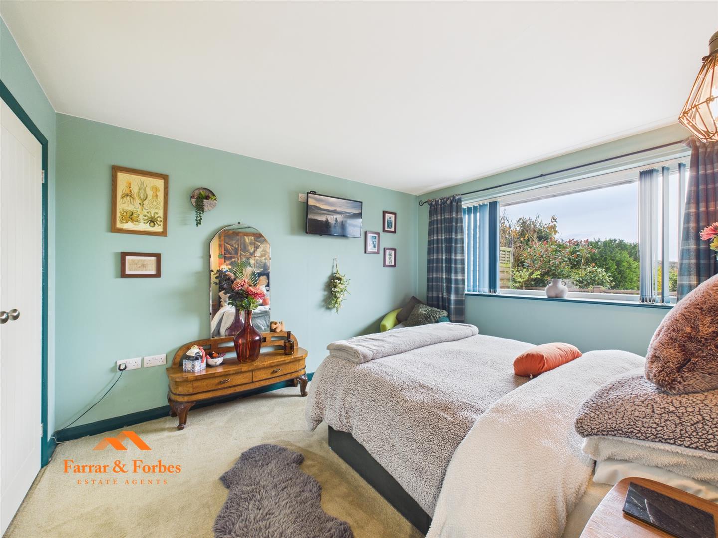 Internally, the hallway leads directly to the spacious lounge, complete with a log-burner and a large window overlooking the front garden, allowing plenty of natural light. The second bedroom, positioned at the front, is currently used as a dressing room but offers ample space for use as a guest bedroom.