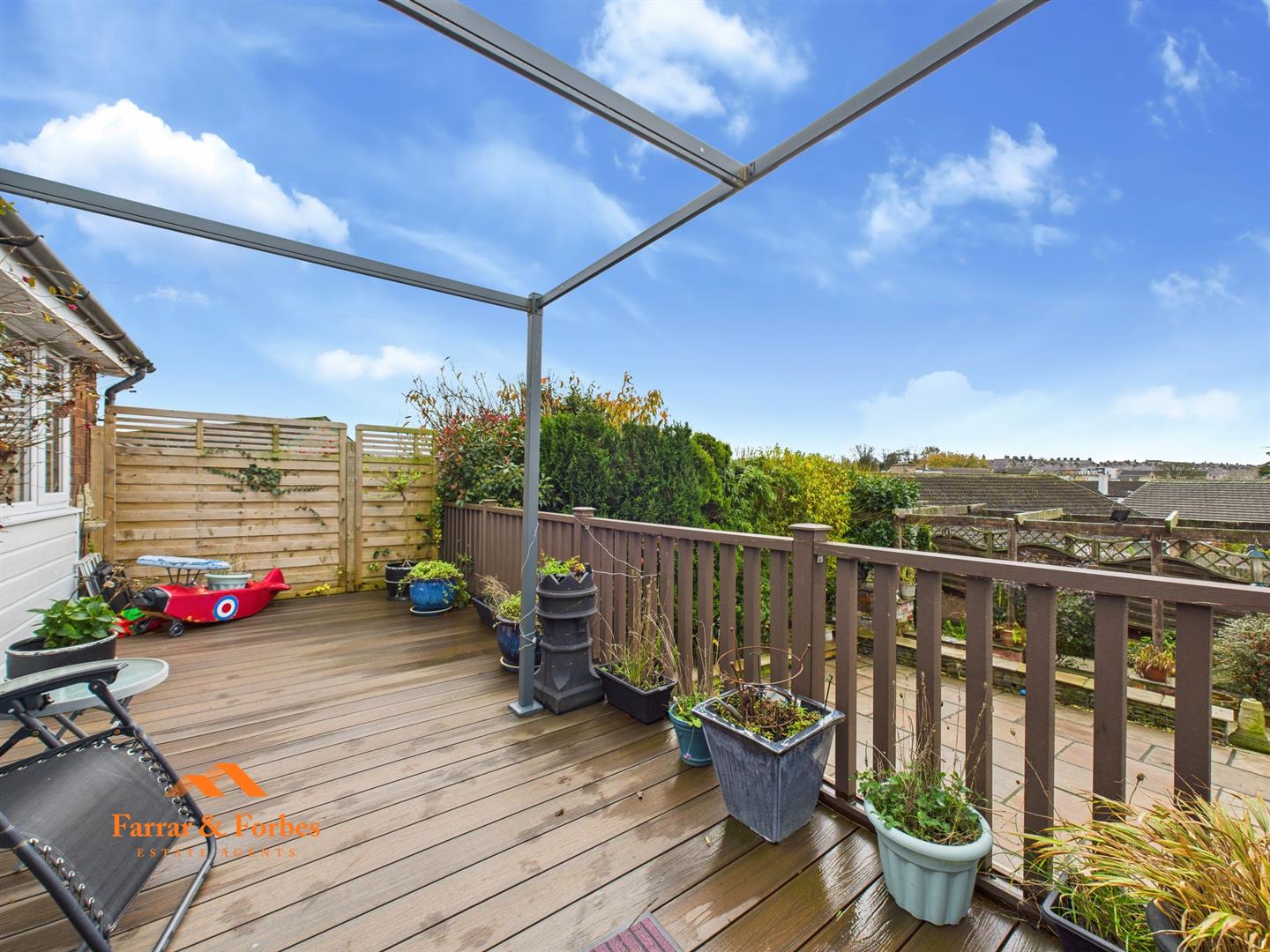 To the rear, the property benefits from a driveway and a single detached garage with electricity. A side pathway leads to the beautifully presented rear garden, featuring Indian stone paving, composite decking, and a raised flower bed.