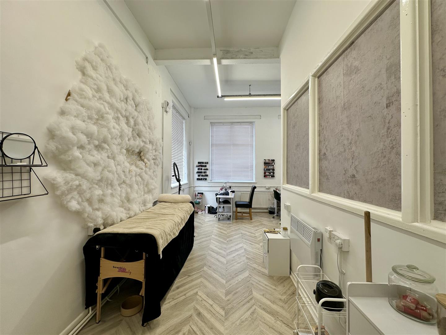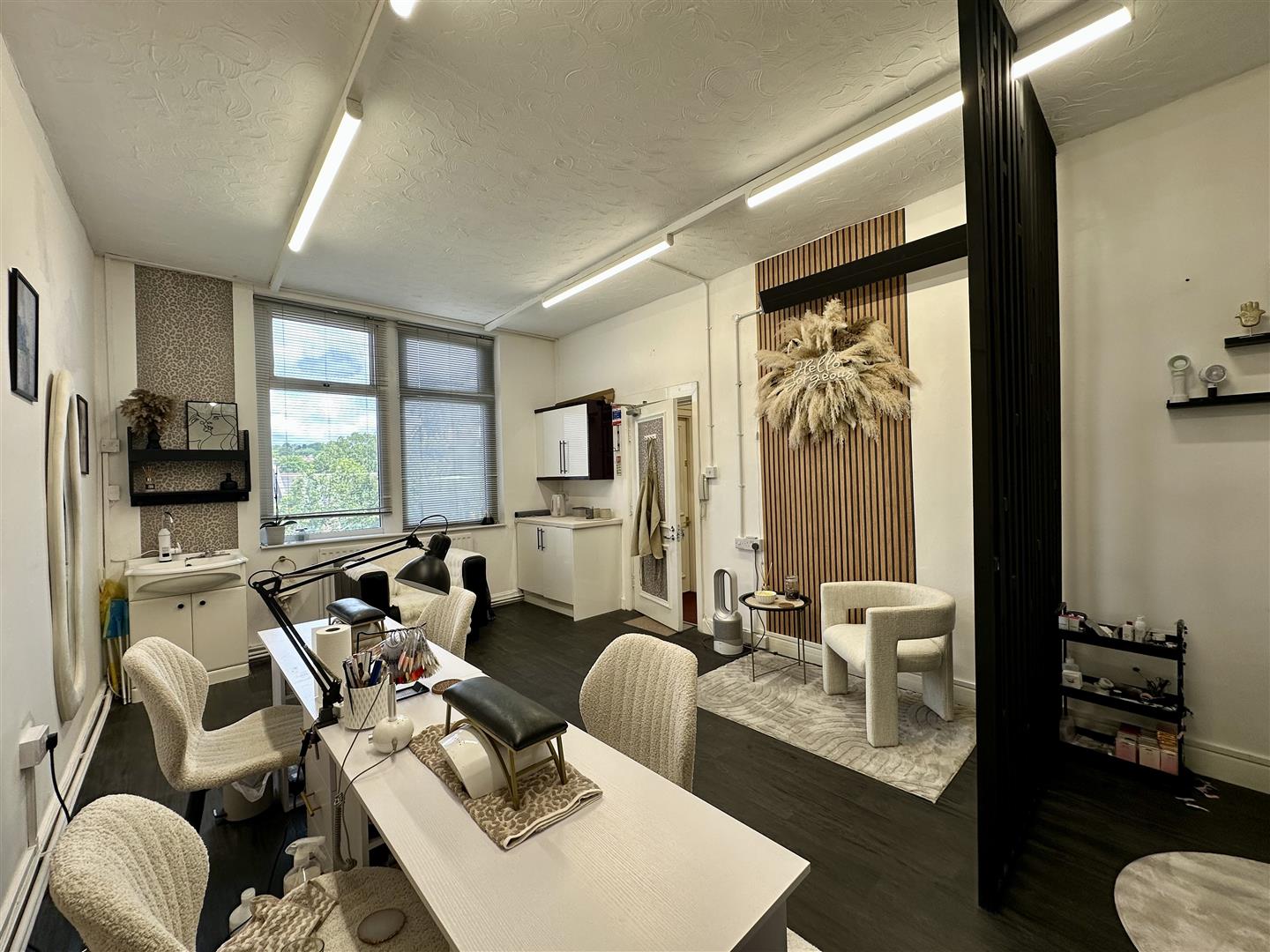 Set over four floors: Ground floor: Salon & beauty room Basement: Large open space, ideal for office use, storage, or salon conversion First floor: Clothing store, fitness centre, and two beauty rooms Top floor: Vacant office space and a beauty room