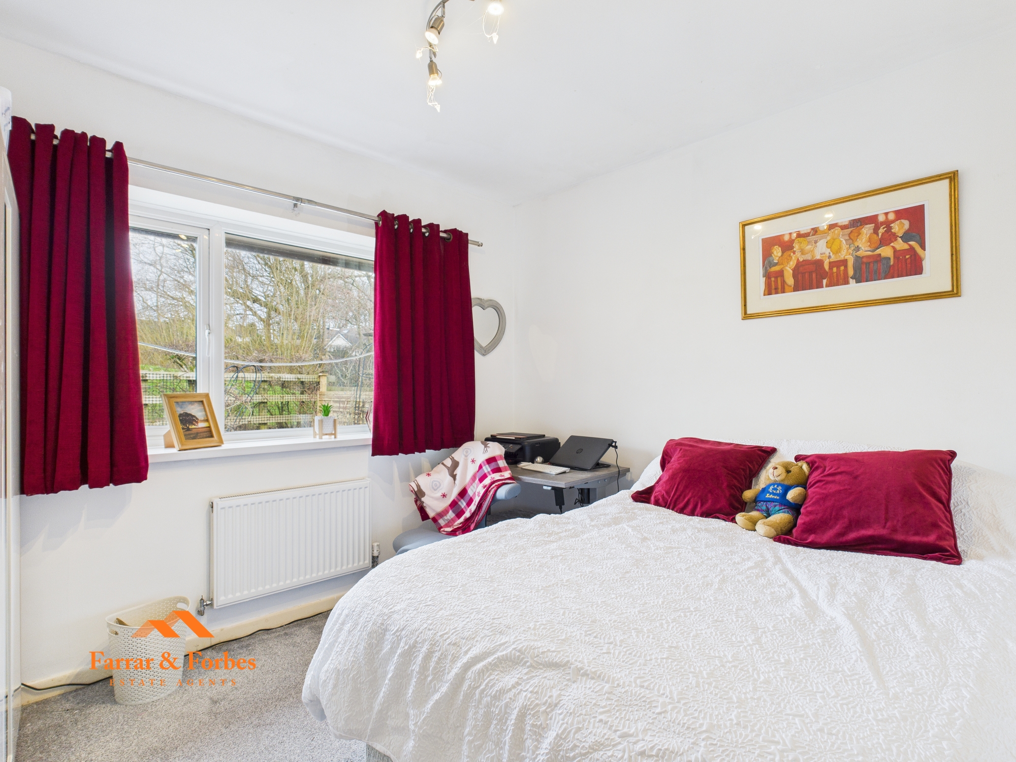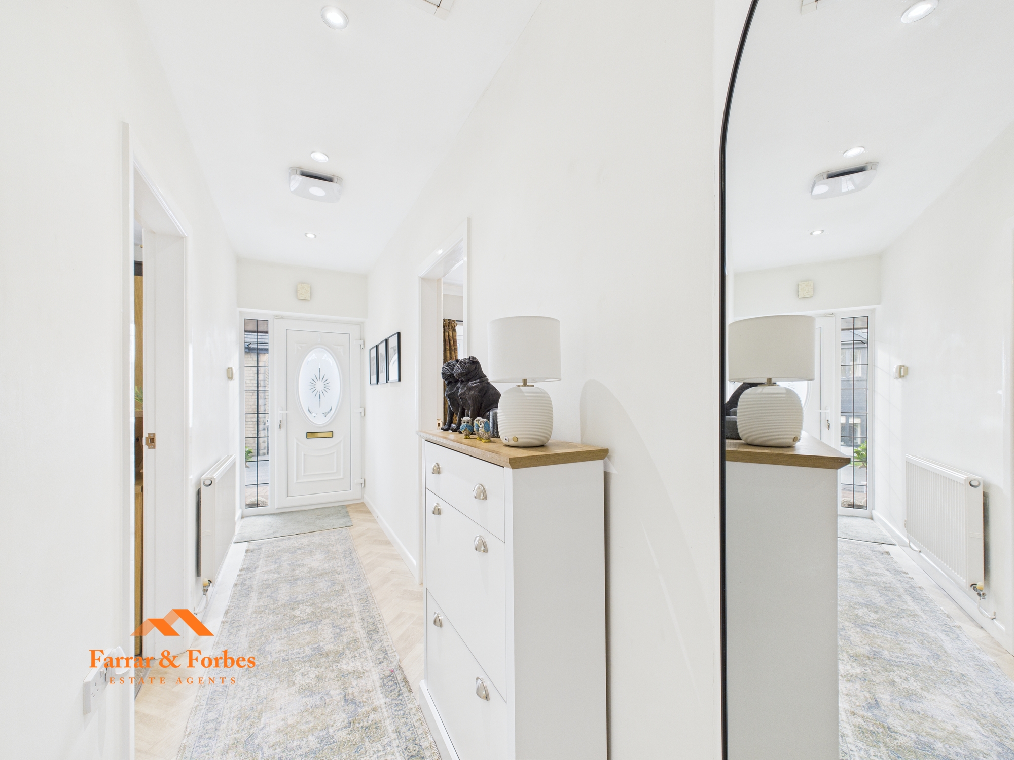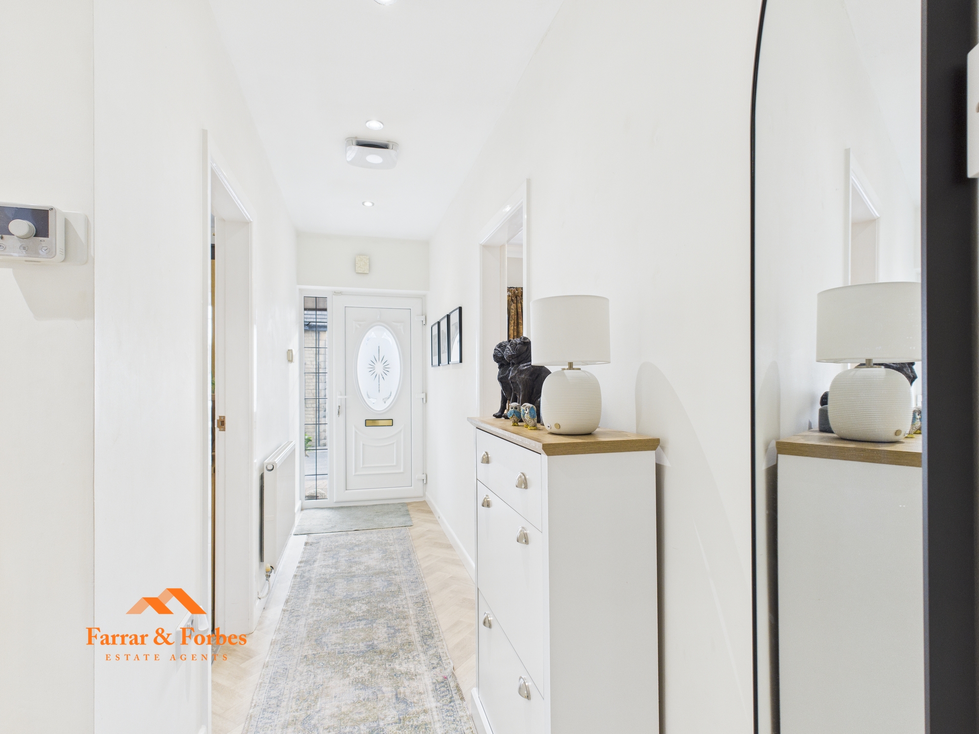 The hallway leads to three well-proportioned double bedrooms. The front-facing bedroom benefits from a bay window allowing in an abundance of light, while the two rear bedrooms enjoy views over the garden.