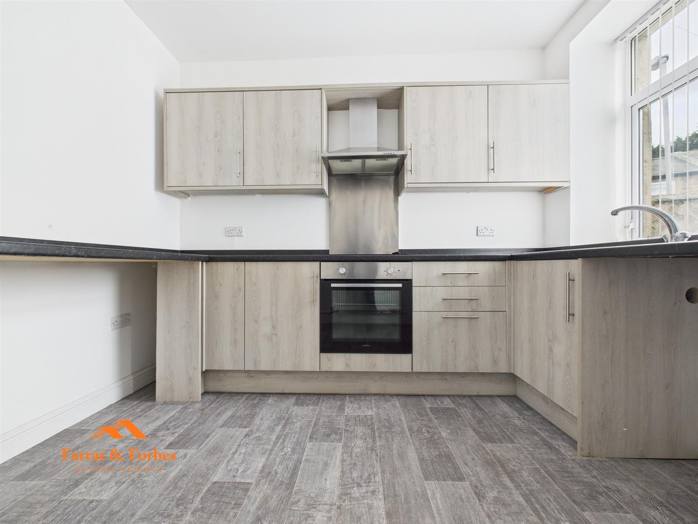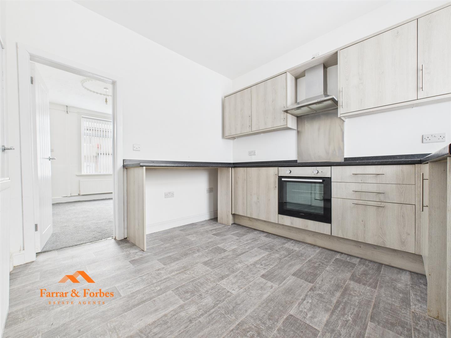 Stepping through the front courtyard, you’re welcomed into a beautifully decorated living room, featuring gas central heating and uPVC double glazing. The rear of the property boasts a stylish horseshoe-shaped kitchen, fitted with sleek grey base, drawer, and wall units complemented by contrasting work surfaces.
